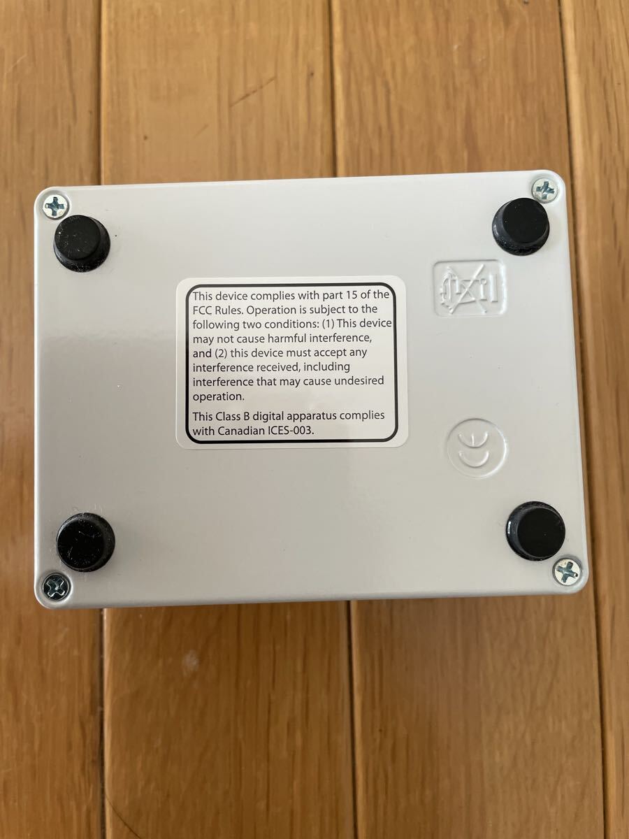 電源をとって、正常に作動します。箱と電源のアダプターが付いてます。