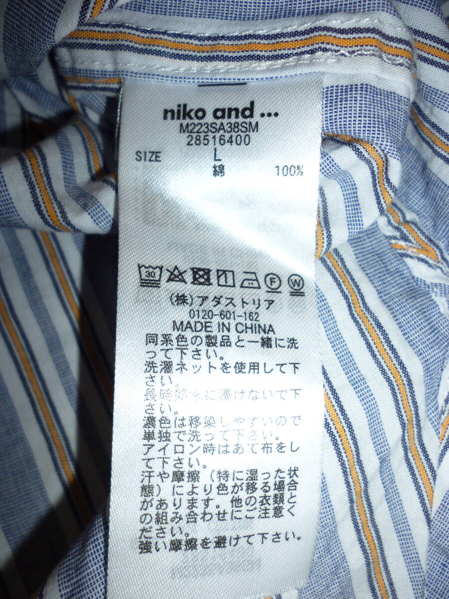 1015-109♂: niko and … ニコアンド 半袖 シャツ size.L 色.マルチ ストライプ アダストリア
