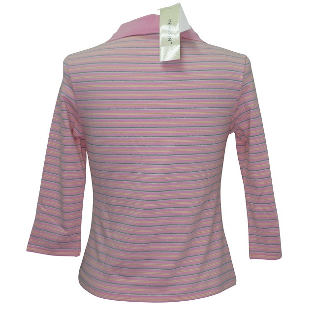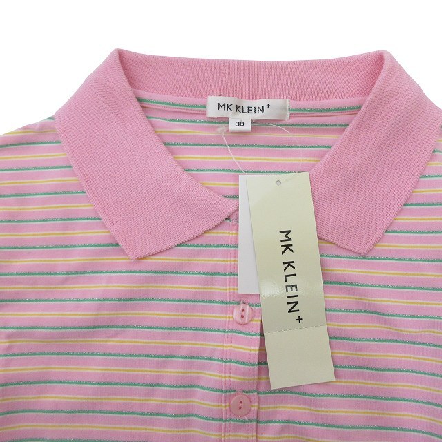 エムケー ミッシェルクラン MK MICHEL KLEIN 七分袖 タグ付き 未使用 ボーダー ポロシャツ 38 Sサイズ相当 ピンク系 93329 0819 レディース