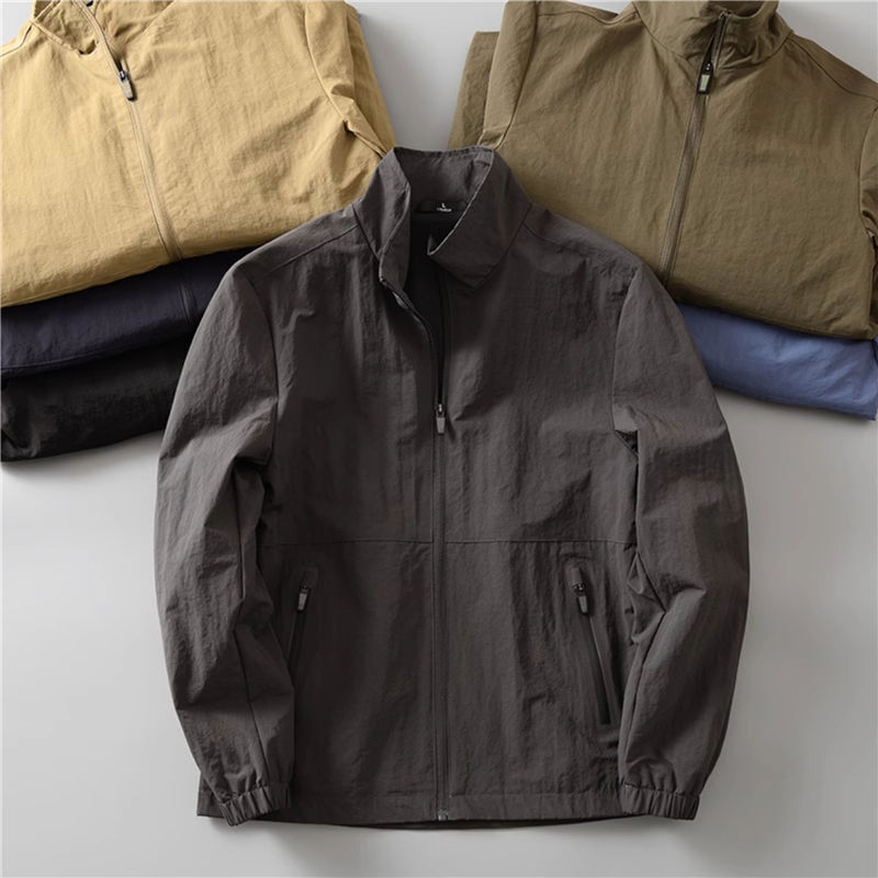 Y6289-L カーキ 新品 リップストップ ジャケット 防風 撥水加工 春秋 軽量 スタンドカラー ライトジャケット メンズ アウター