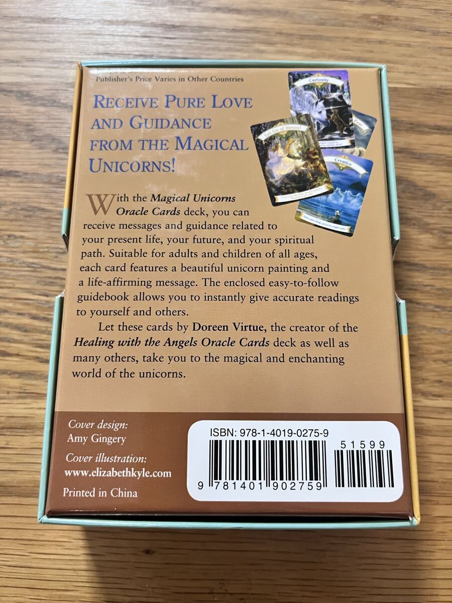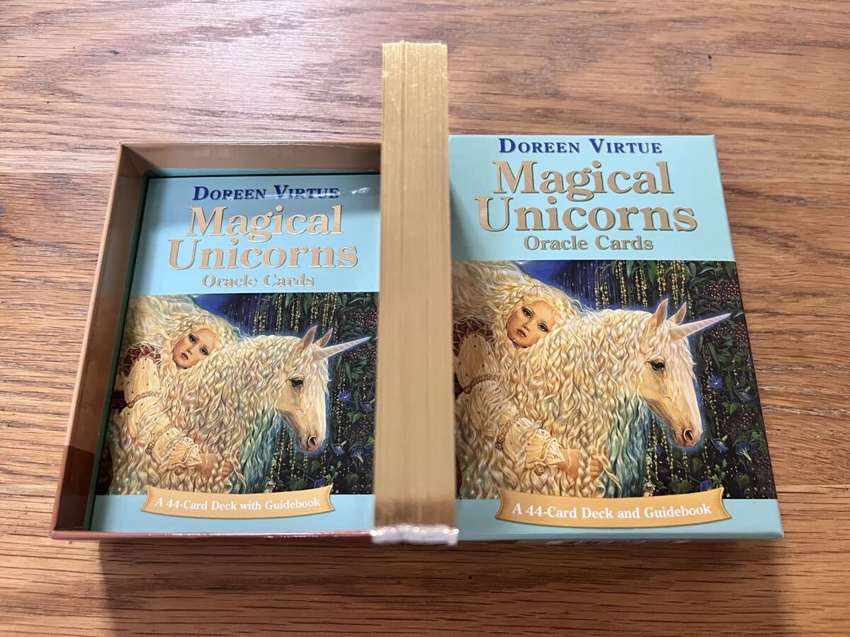 魔法のユニコーンからのメッセージを受け取るためのオラクルカードセット。金縁です。