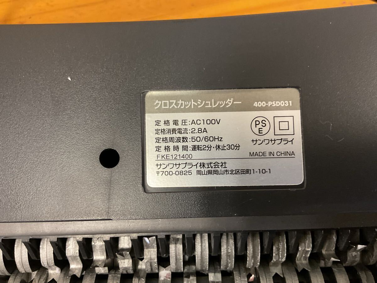 動作品 稼働品 サンワサプライ 400-PSD031 電動シュレッダー クロスカット シュレッダー 家庭用 電動 中古品 現状品