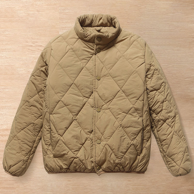 Y6284-L カーキ 新品 キルティング 中綿ジャケット 撥水 防風加工 防寒 暖かさ 秋冬 メンズ スタンドカラー トップス ライトコート