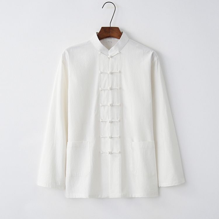 新作大人気チャイナ服 メンズ カンフー服 綿麻 長袖 上下セット セットアップ カジュアル チャイナシャツ ロングパンツ /白2XL