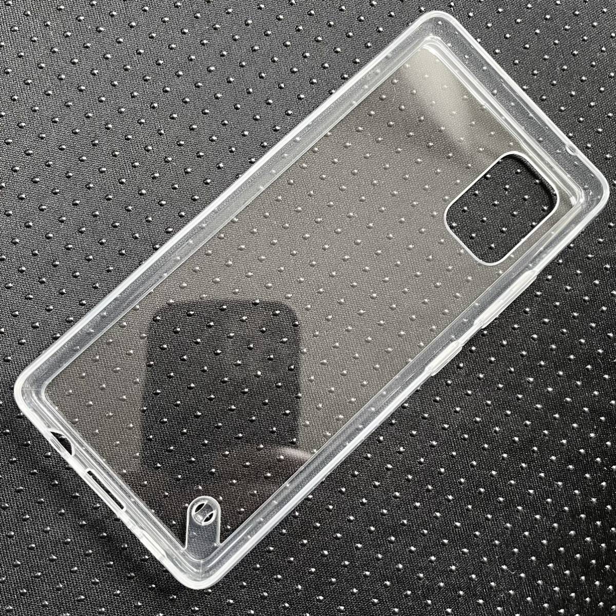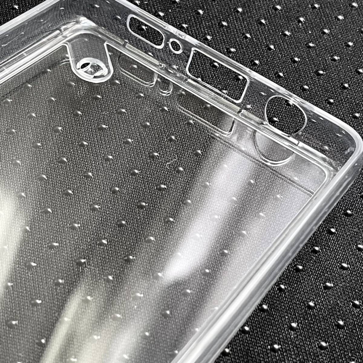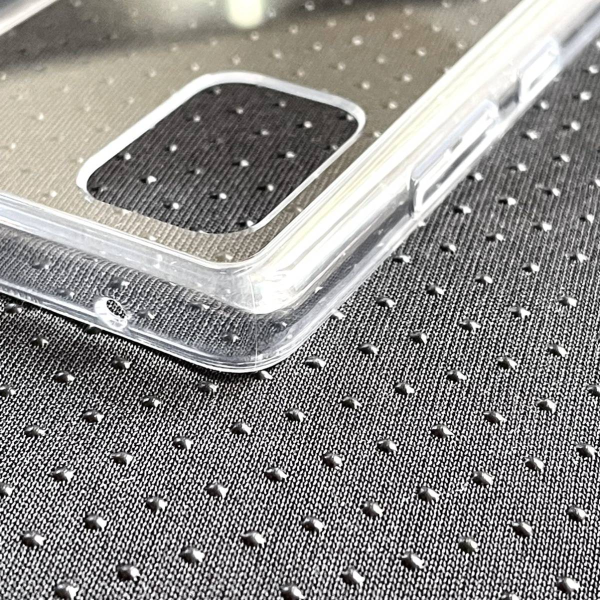 側面に高弾性・無黄変性に優れた三井化学(株)製「フォルティモ(R)/TPU(熱可塑性ポリウレタン)」素材を、背面に強じんで透明度の高いポリカーボネート素材を使用した、スリムなスタイルのハイブリッドケース