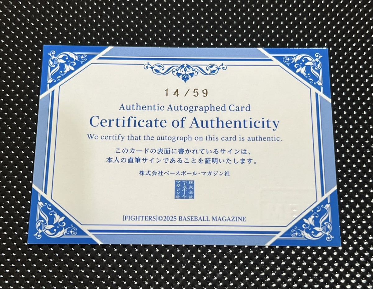 59枚限定 ドリュー・バーヘイゲン BBM 直筆サイン Auto 日本ハム 14/59 Drew Verhagen