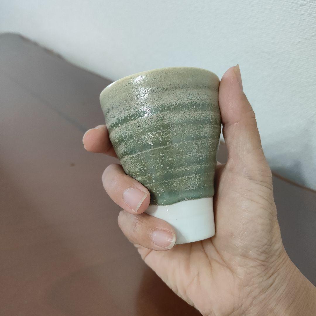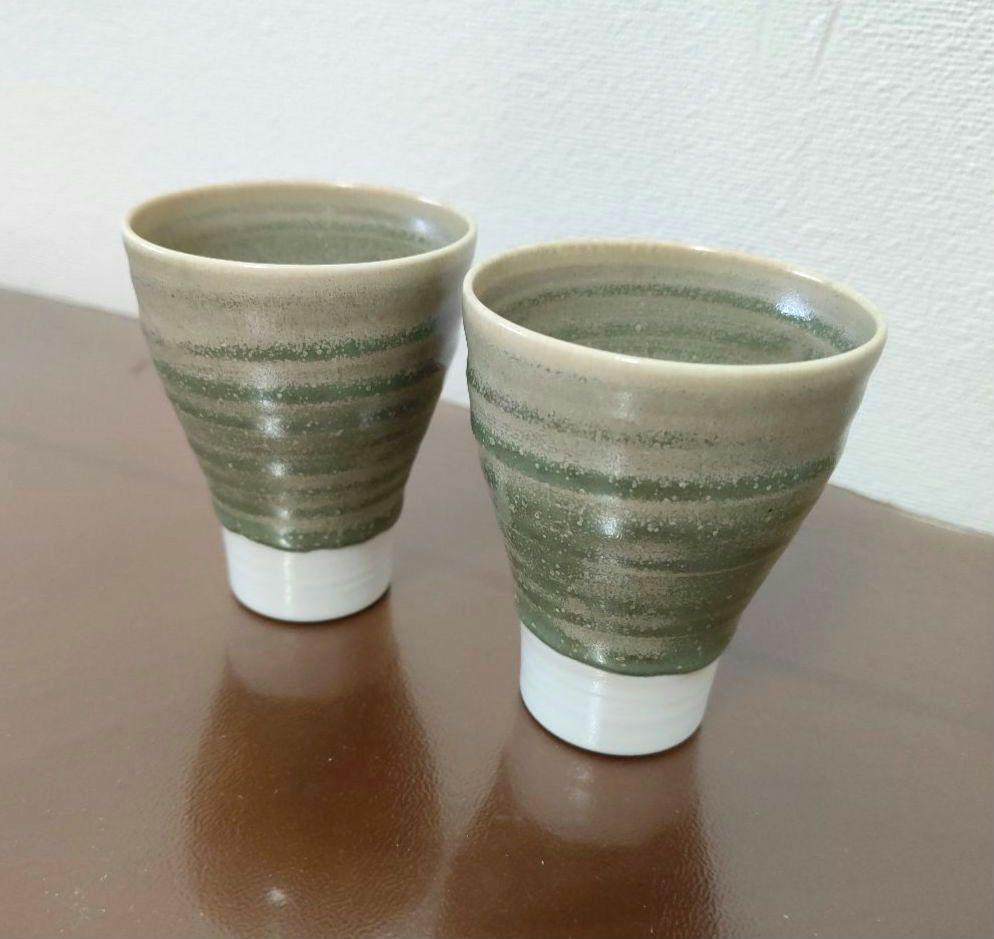 小さいお湯呑み2個セット 陶器製 裾すぼまり ミニサイズ