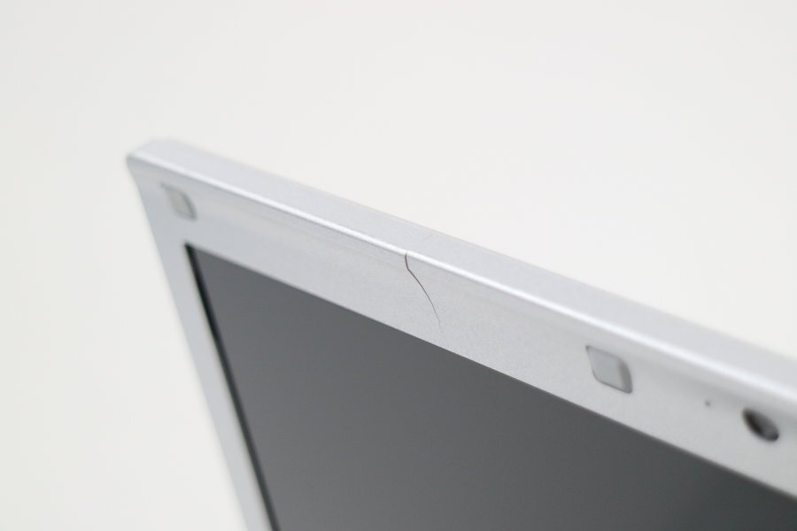 ・天板擦り傷 液晶枠にヒビ割れ パームレスト摩耗 変色 タッチパッド摩耗 底面擦り傷 塗装剥げあり