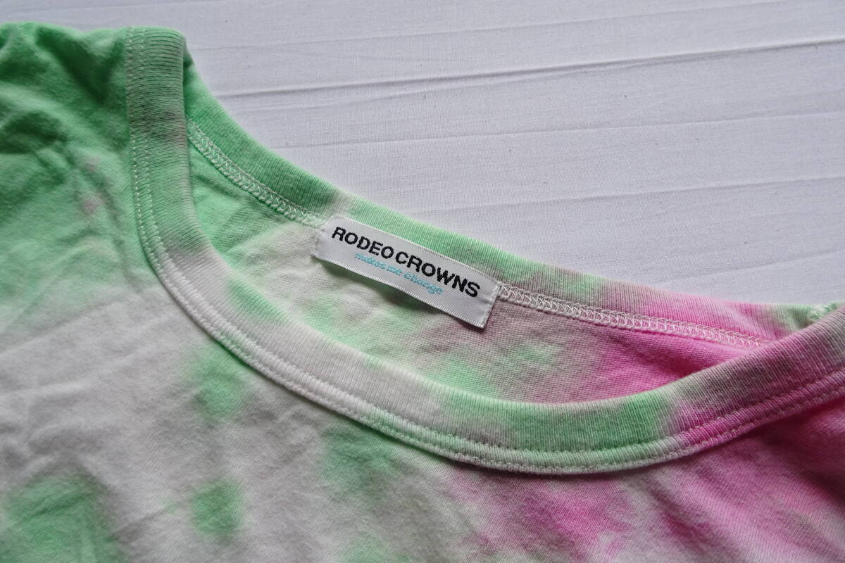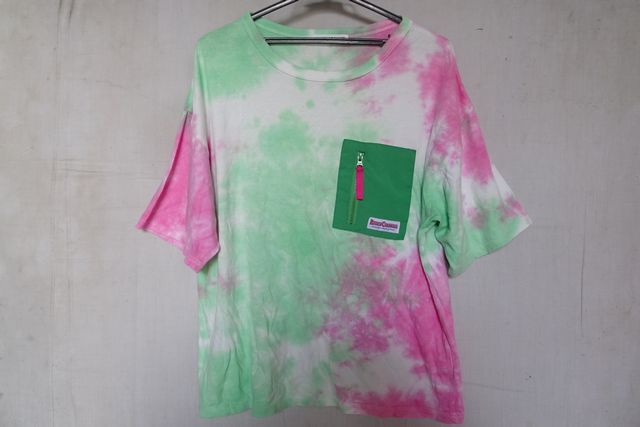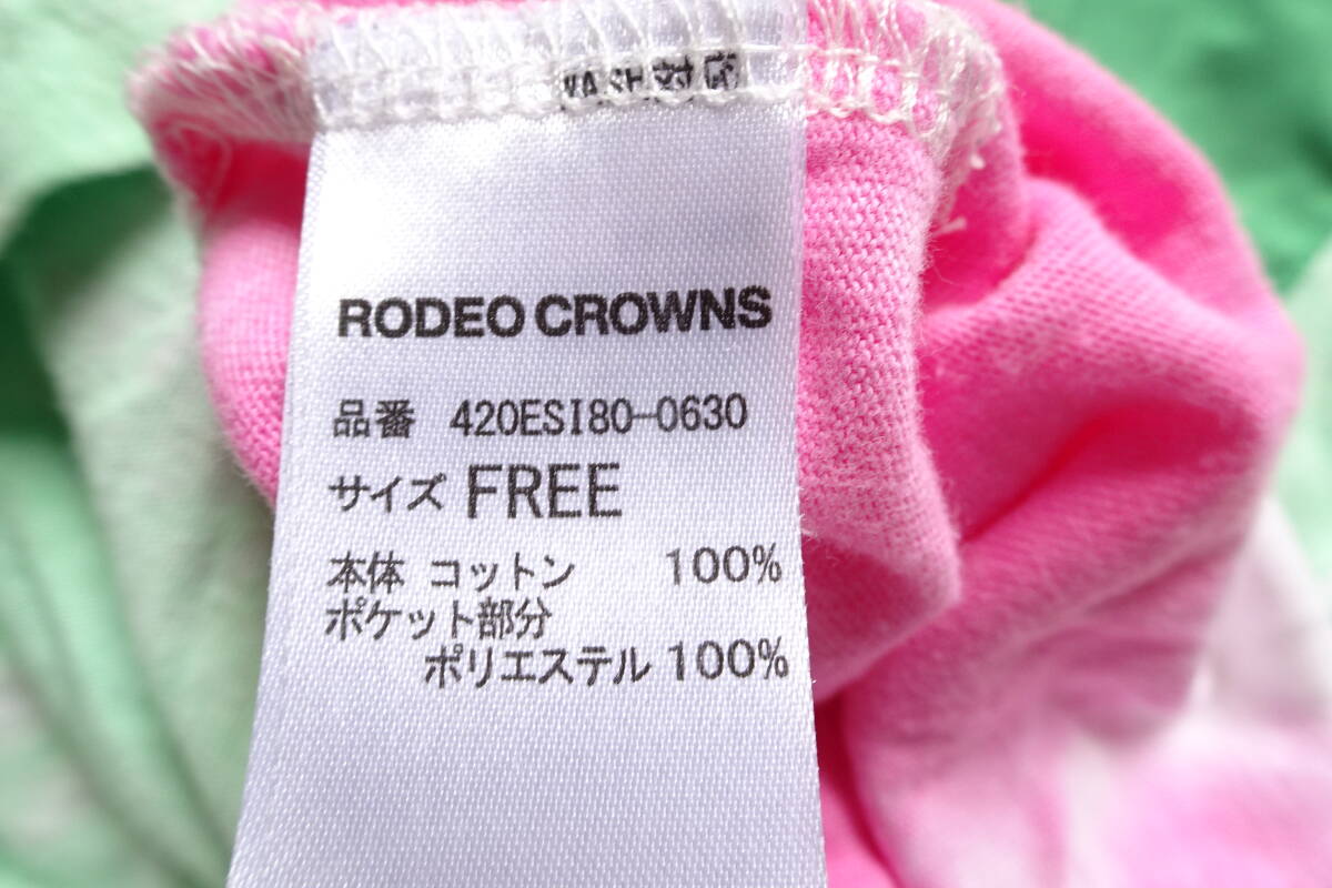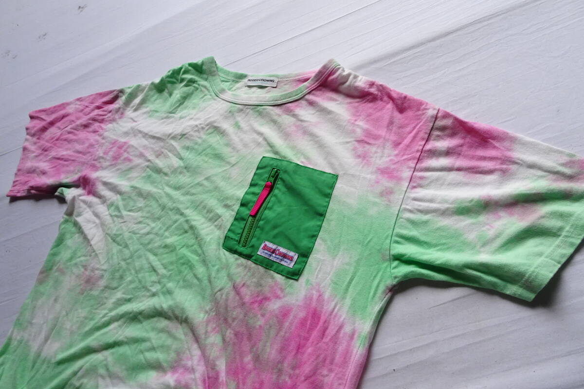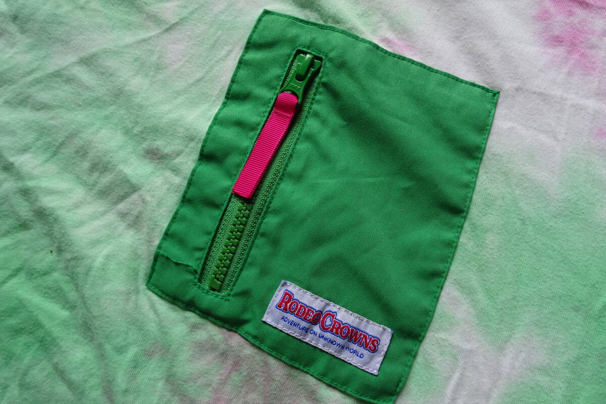 RODEO CROWNS/ロデオクラウンズ/半袖Tシャツ/クルーネック/タイダイ染/ファスナー付ポケット/白/黄緑/ピンク/フリーサイズ(8/20R7)