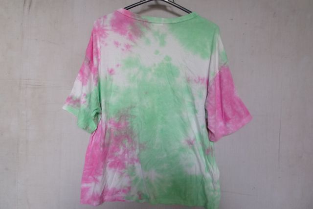 ピンクと黄緑のタイダイ染っぽい柄です。