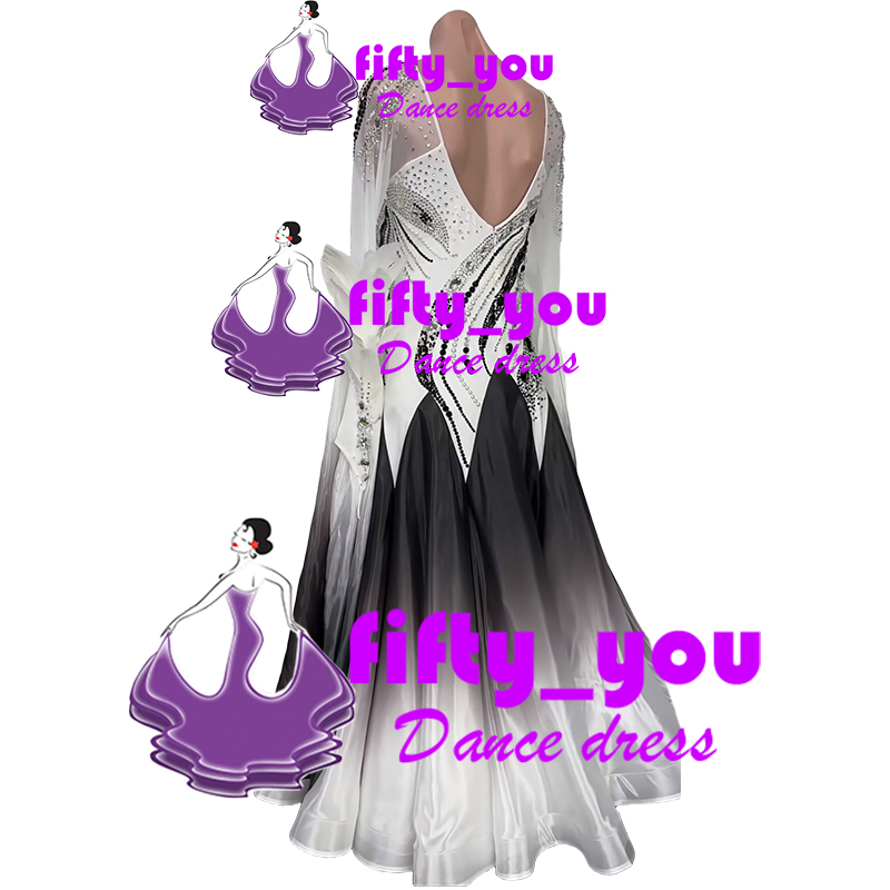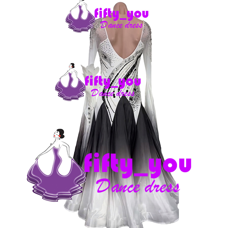 新品fifty_you レディース社交ダンスドレス  モダン競技会ドレス スタンダードドレス セミオーダー 黒白グラテーション色