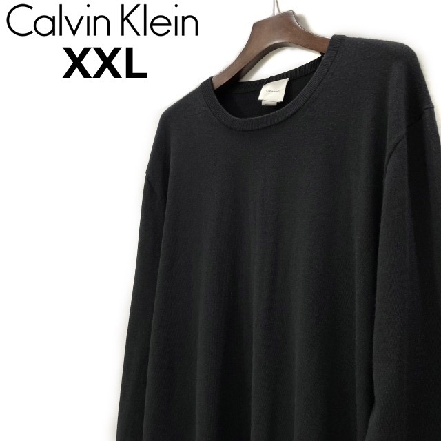 売切り【正規新品】Calvin Klein カルバンクライン◆長袖 ニット セーター プルオーバー US購入 CK シンプル ロゴ刺繍(XXL)黒 181215