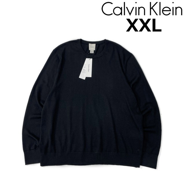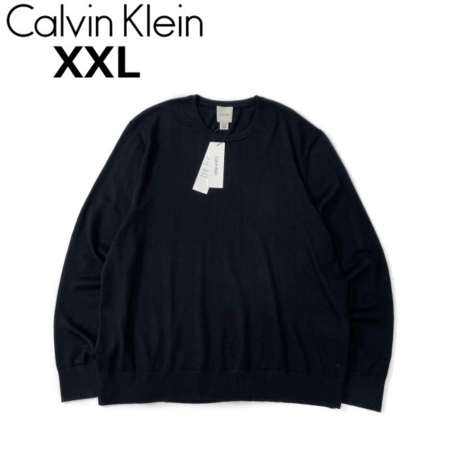 【USA購入 正規新品】Calvin Klein カルバンクライン◆長袖 ニット セーター プルオーバー US購入 CK シンプル ロゴ刺繍(XXL)黒 181215