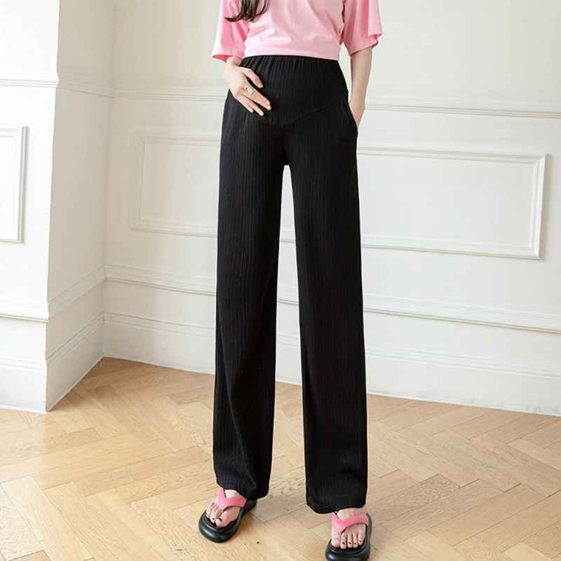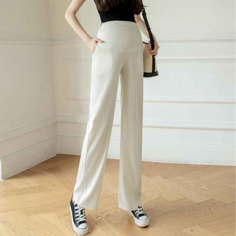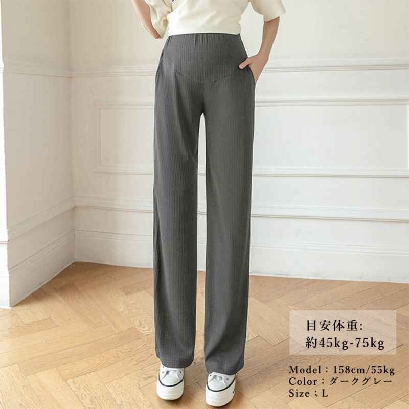 柔らかい素材でストレスフリーな穿き心地の美脚マタニティプリーツワイドパンツ