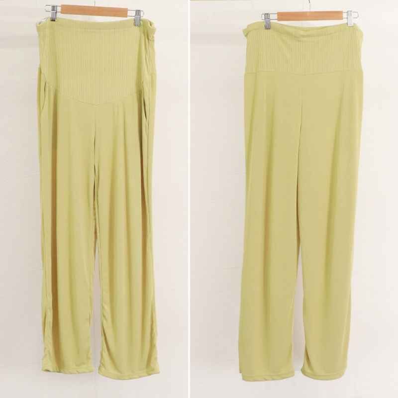 お腹リブ仕様で、しっかりストレッチがきくので、大きくなるお腹を優しく包みます。産前から産後まで長く着用いただけます。