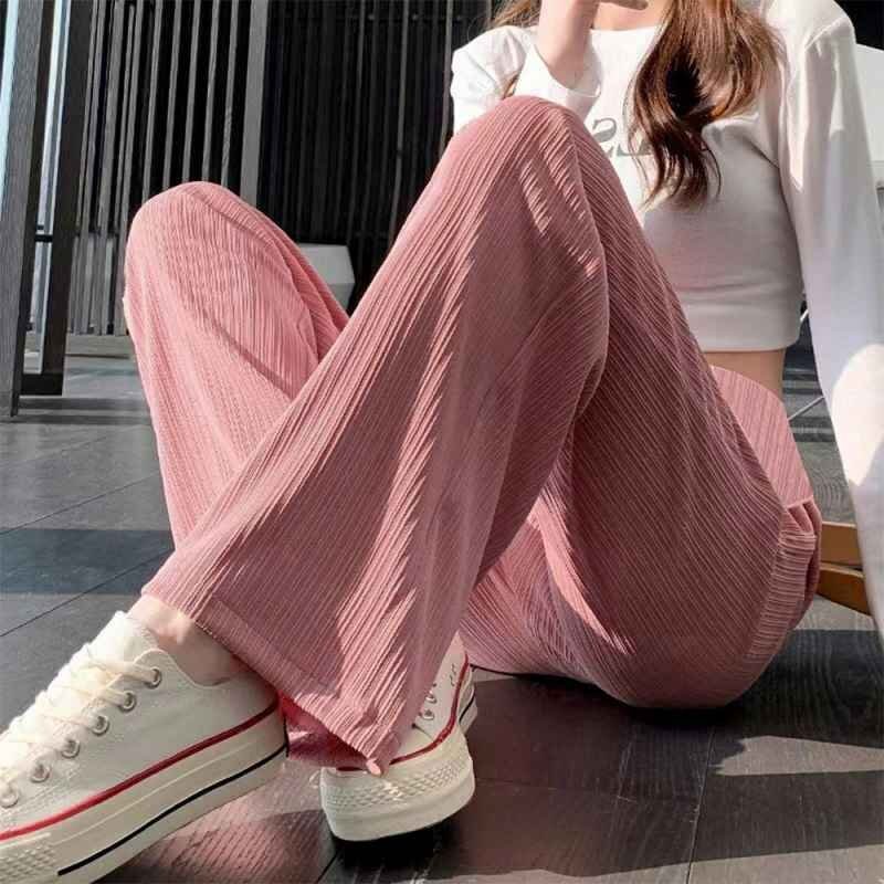 プリーツ加工が施されたワイドシルエットで、スタイリッシュでありながら着やせも期待できます。