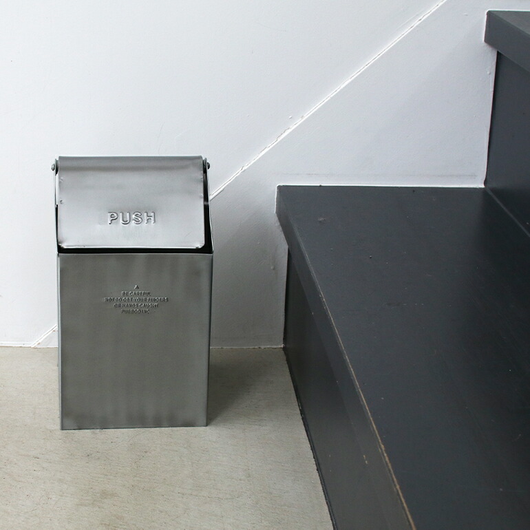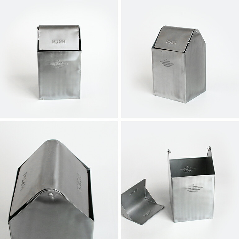 三角屋根のフタが揺れ動くスチール製のダストボックス。