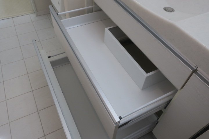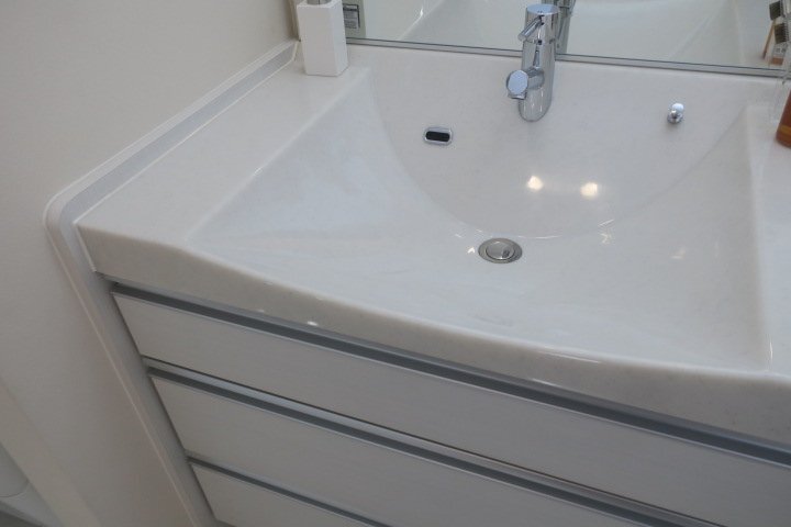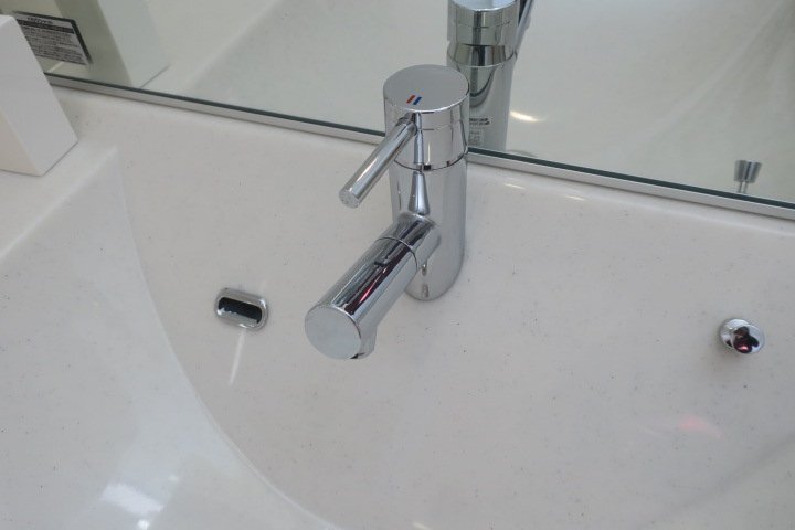 洗面化粧台の中央のタイルや鏡は基本的に付属致しません。