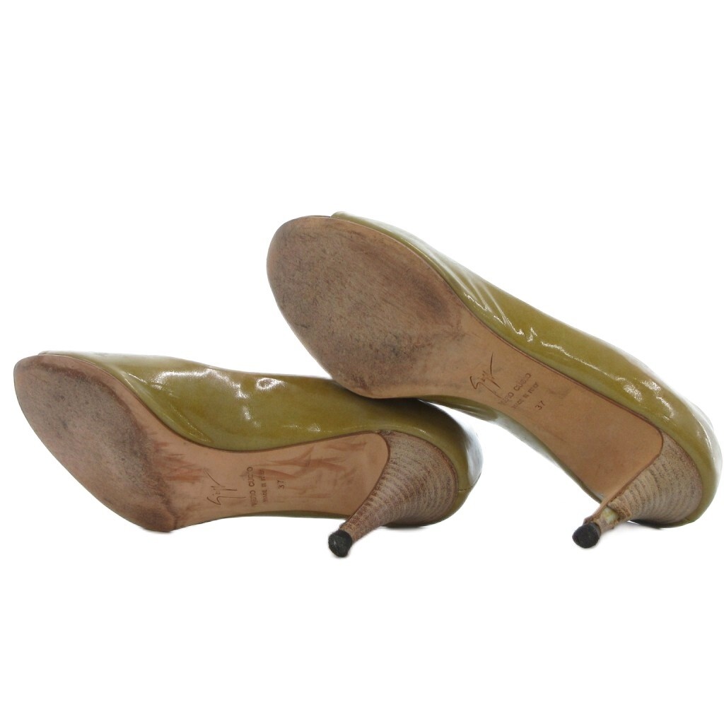 ジュゼッペザノッティ パンプス オープントゥ コーンヒール 37 マスタードカラー /UO レディース