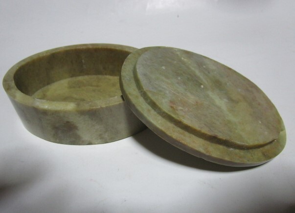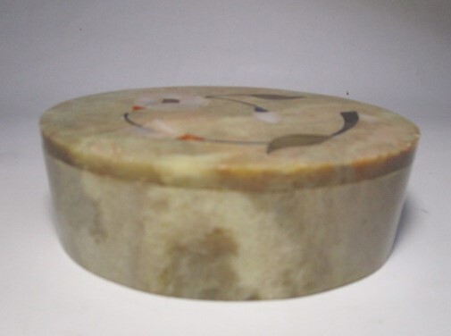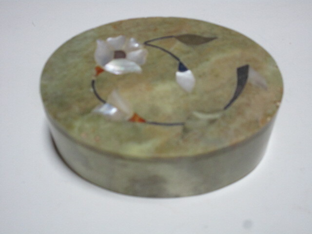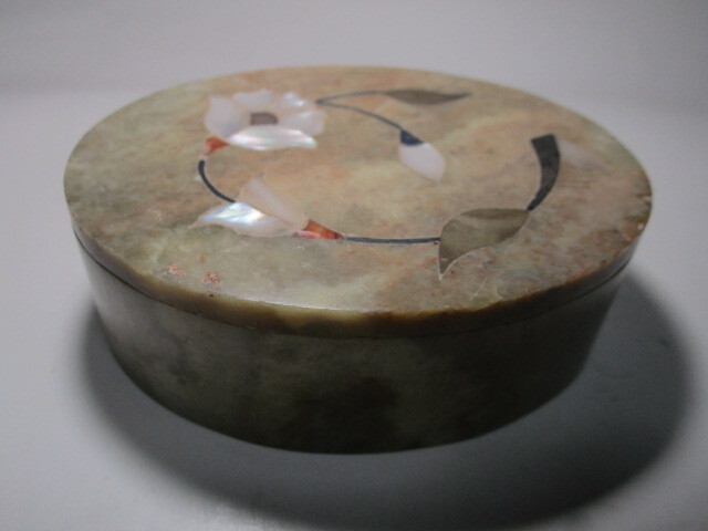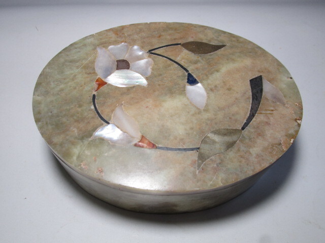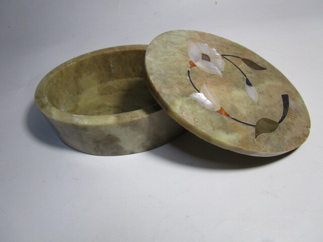 大理石をくり貫き蓋表に小花をあしらった螺鈿細工を施した素敵なアクセサリーケースです。