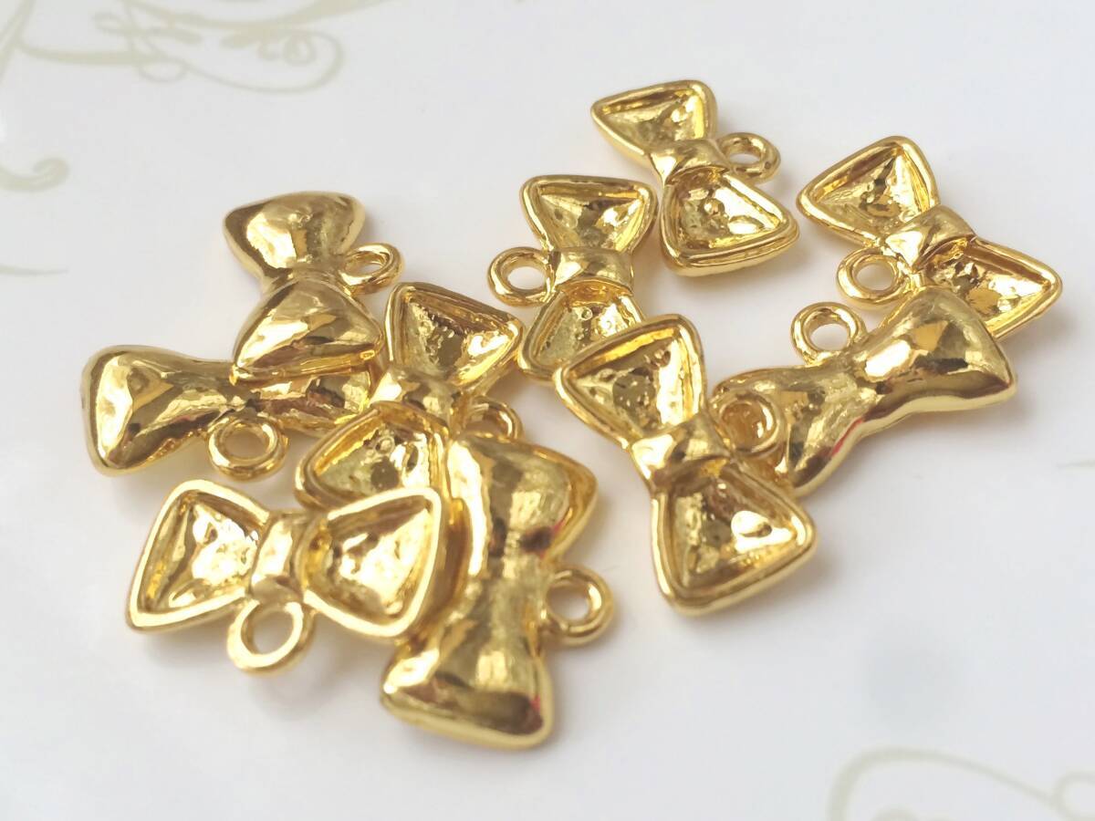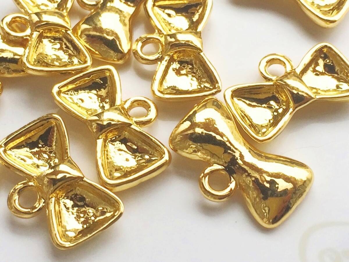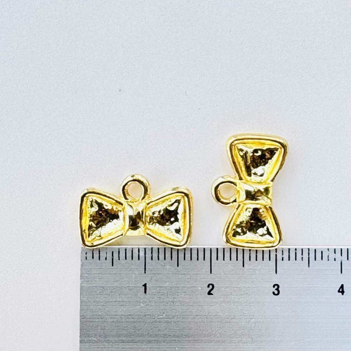 リボン レジン 粘土樹脂 土台 チャーム 10個 《ゴールド》