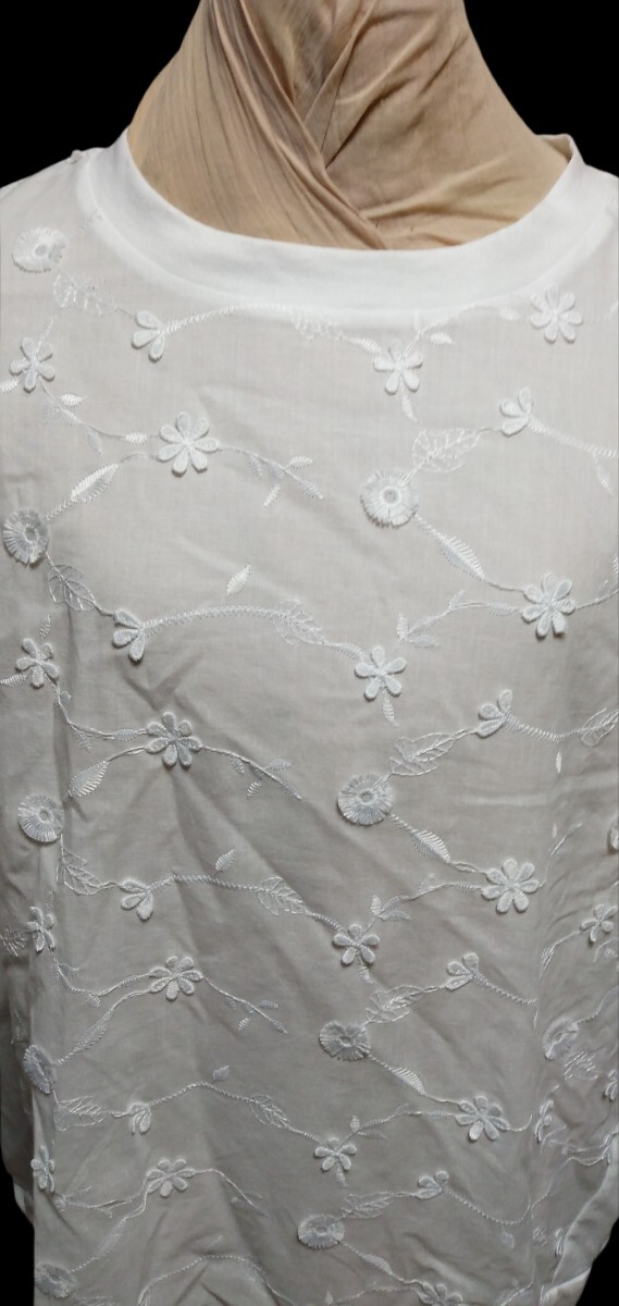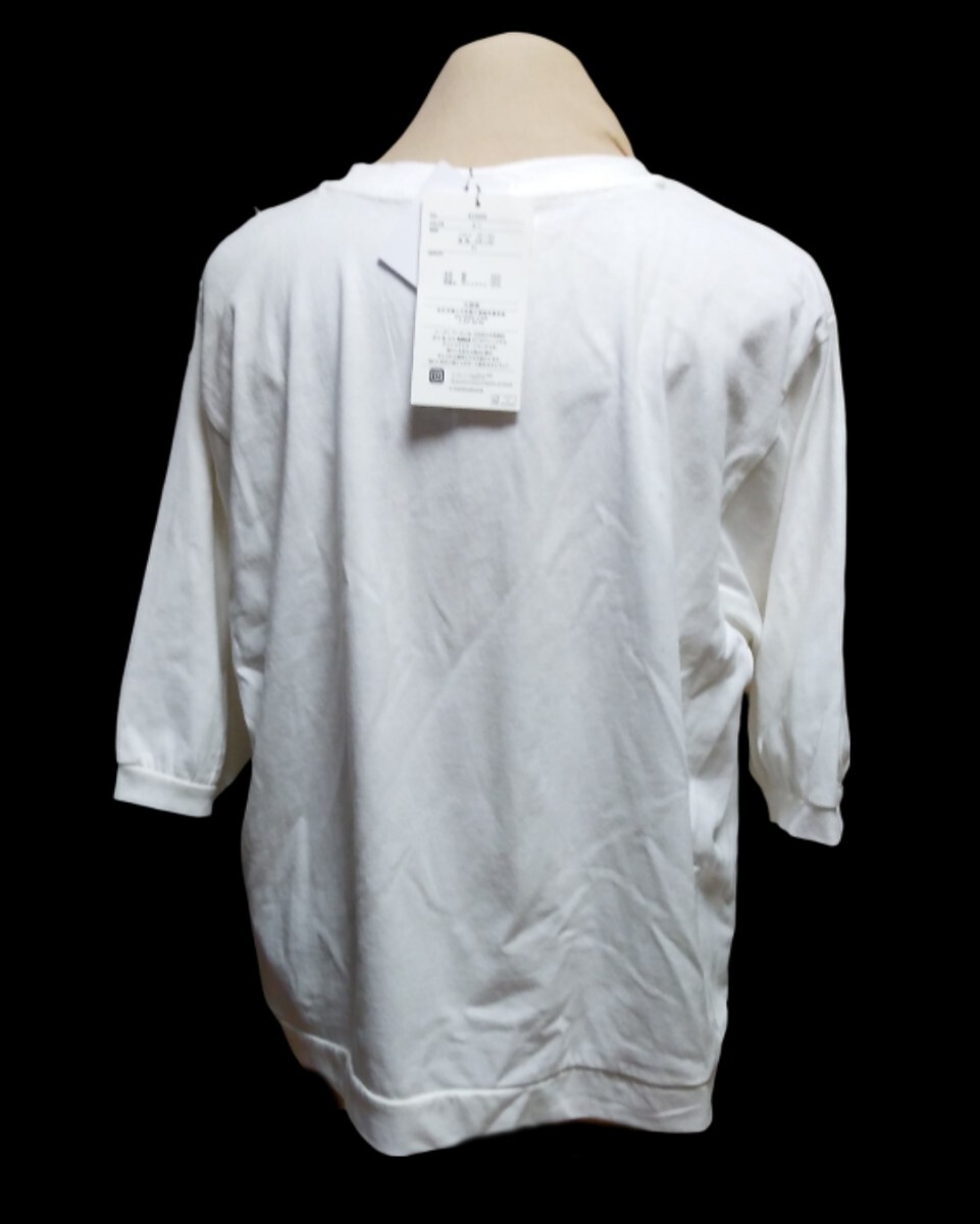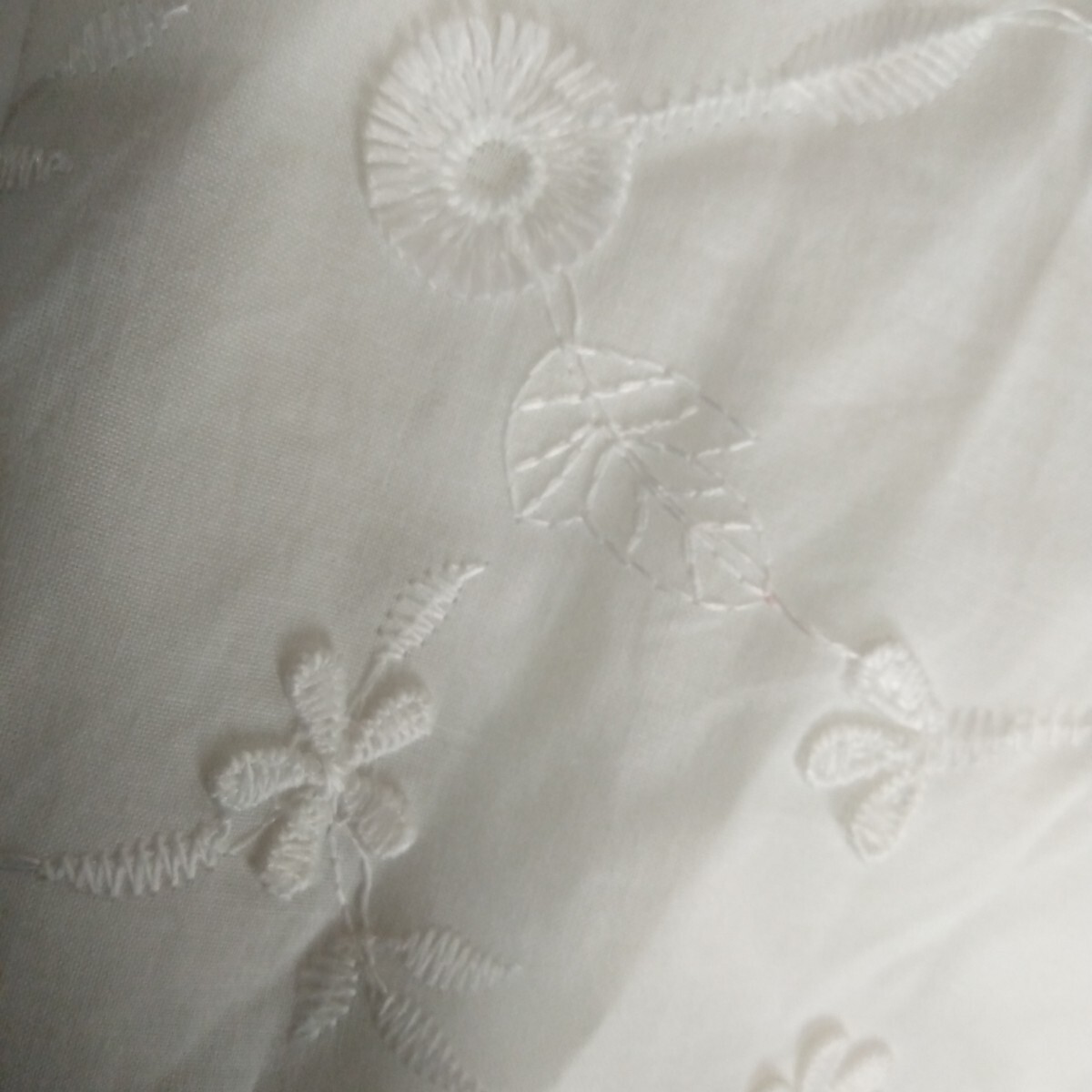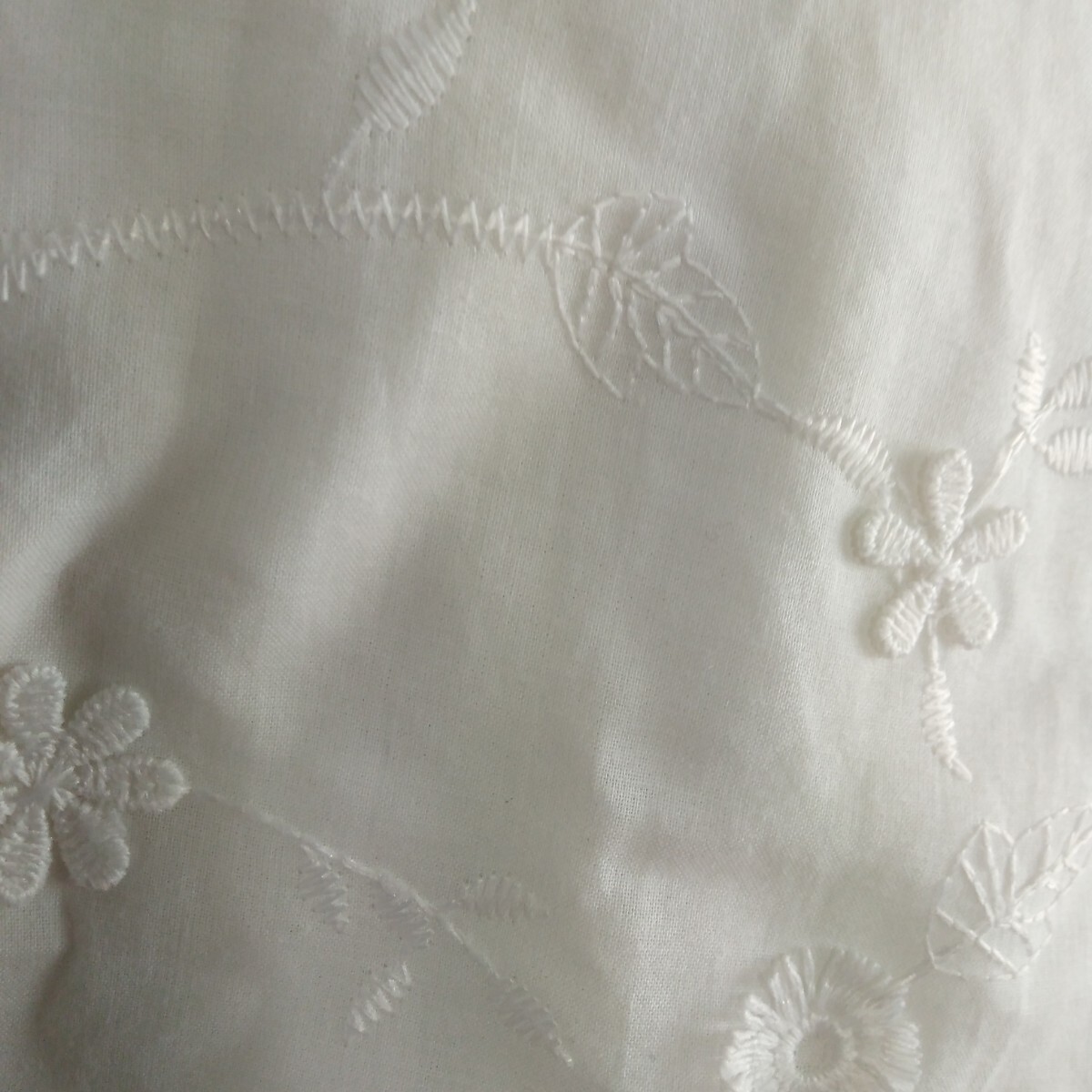 前面は布帛生地に刺繍を施しています。脇から背面はカットソー生地です。