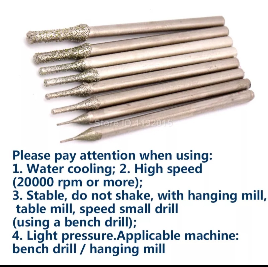 尖端が極細サイズで針先がまっすぐなダイヤモンドドリルビットは製造時の合格品が少ないので精度の高い物はとても高価な道具になってしまいますが過熱防止の水やりをして使用すると長期間お使いになれます。