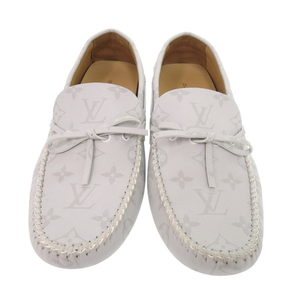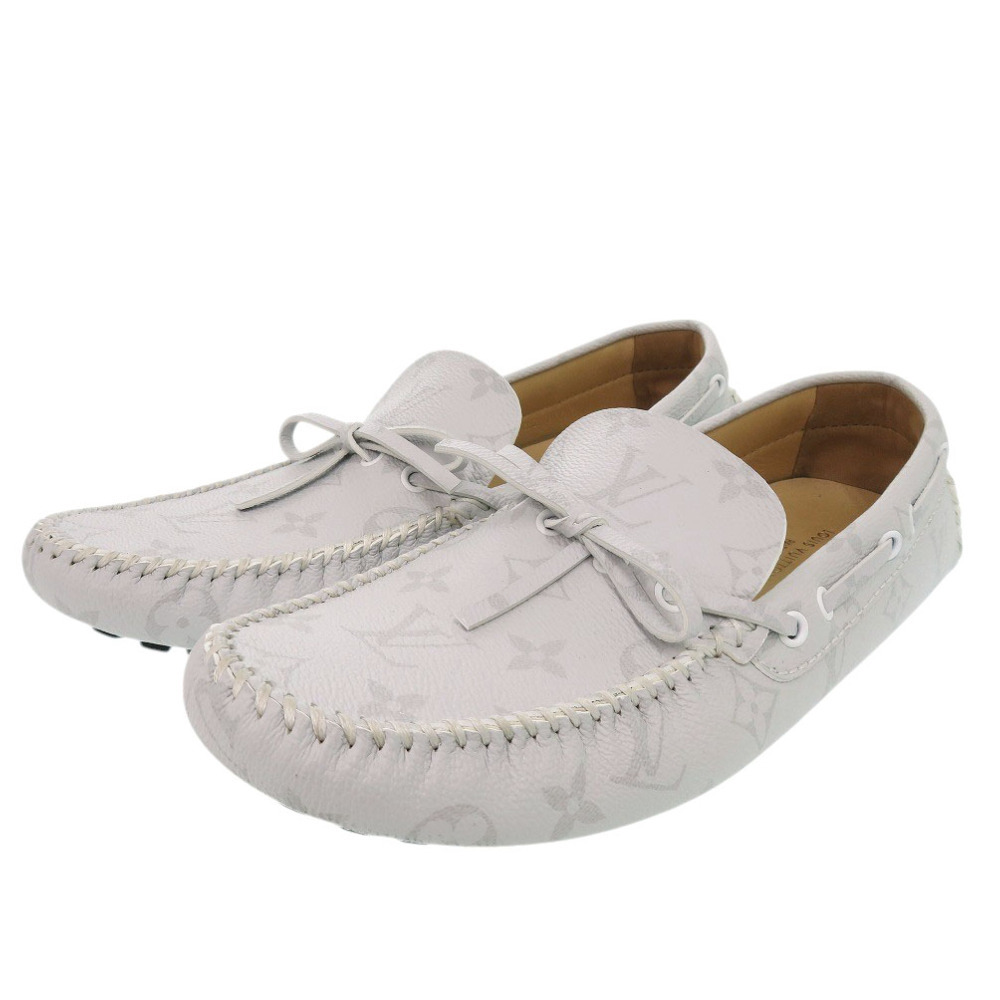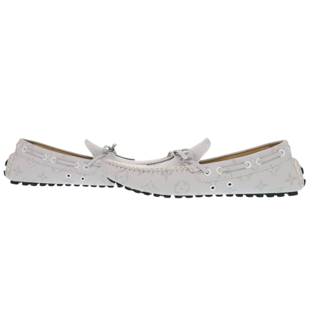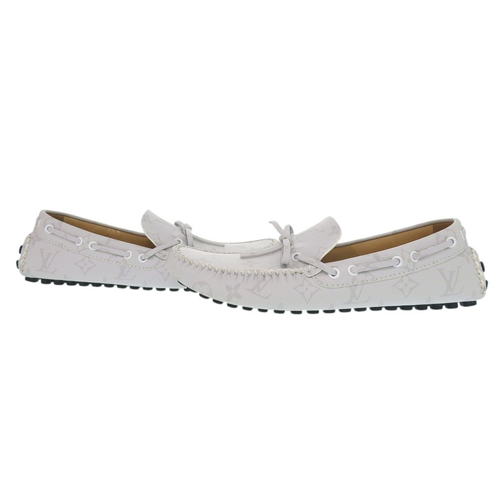 美品 ルイ ヴィトン ドライビングシューズ アリゾナライン モカシン 26cm モノグラム レザー グレー LV 0512 LOUIS VUITTON