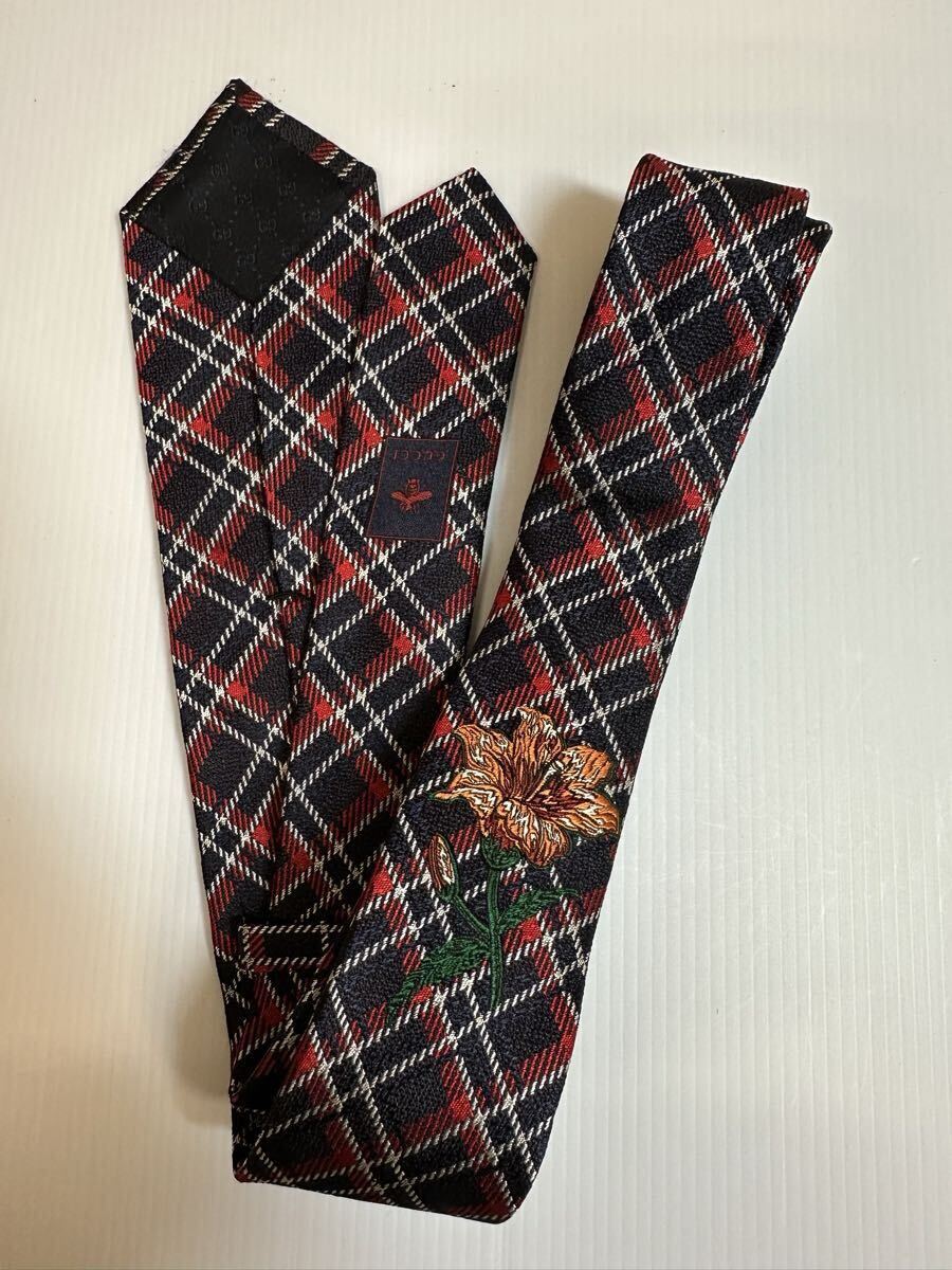 商品名 | GUCCI グッチ ネクタイ チェック柄 フラワー刺 蜂 ビジネス メンズ |