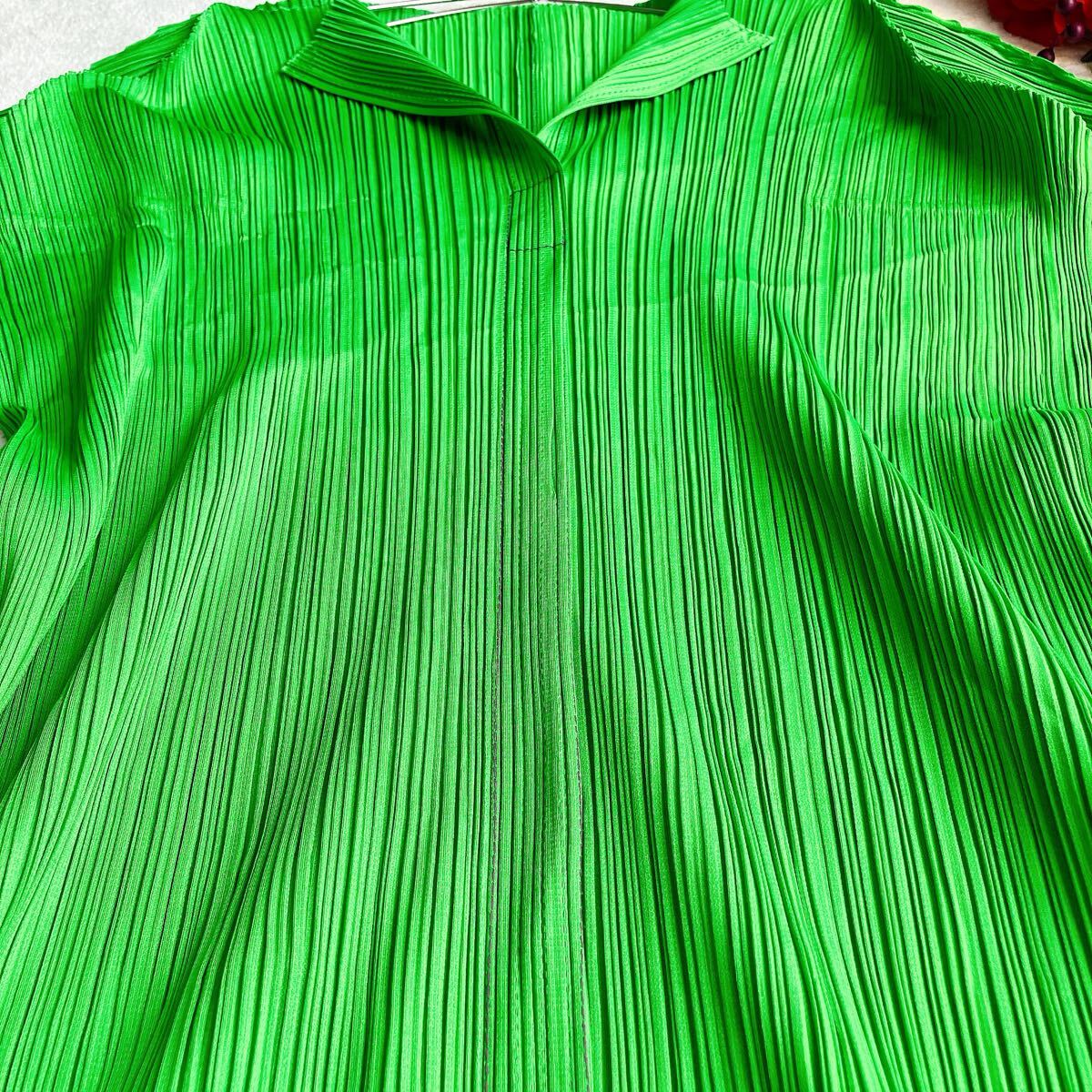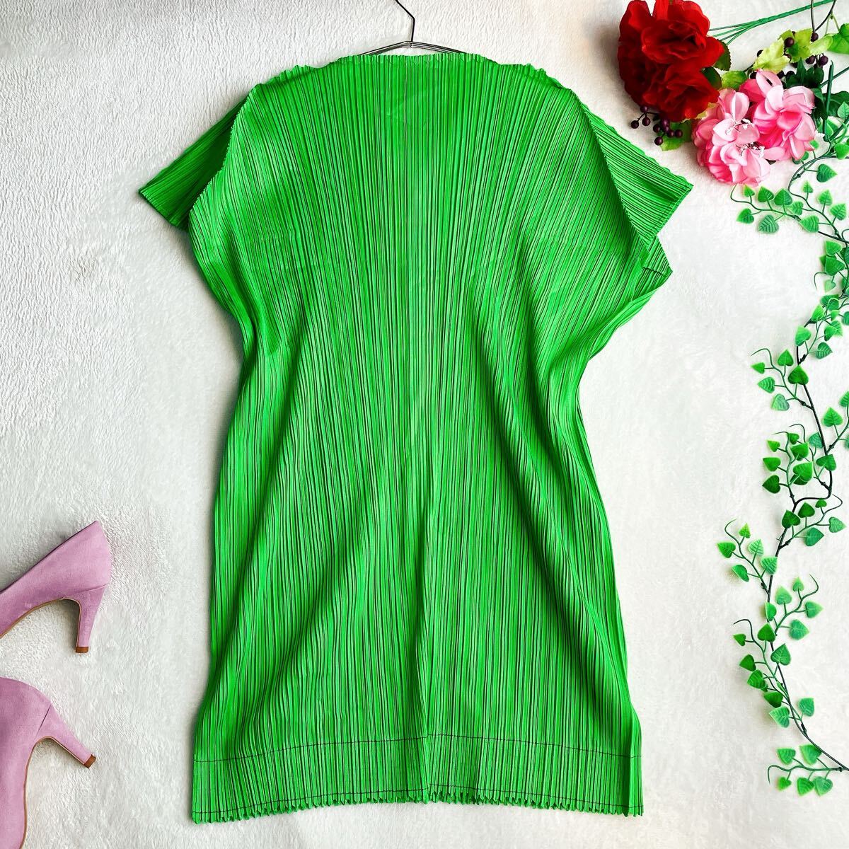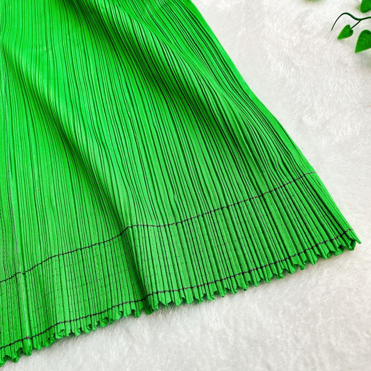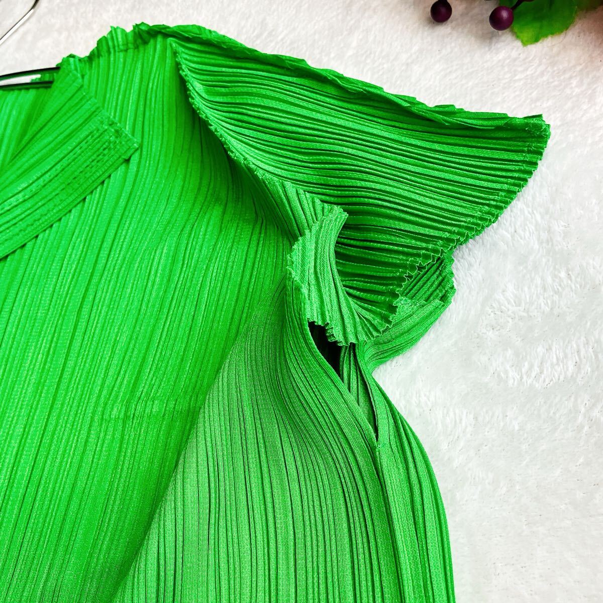 PLEATS PLEASE ISSEY MIYAKE プリーツプリーズ イッセイミヤケ★ビッグシルエット イタリアンカラー ワンピース ステッチ ライトグリーン