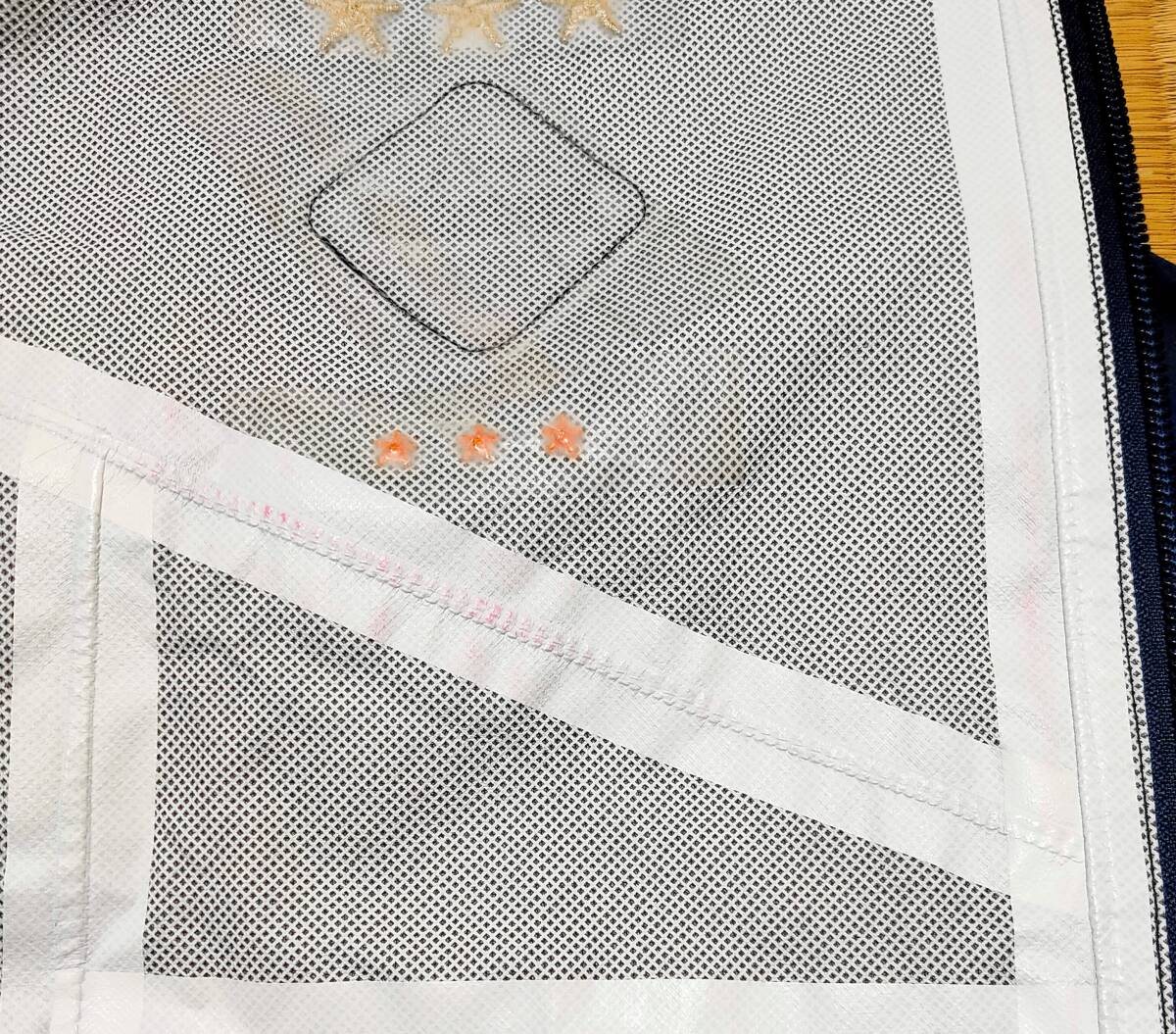 JACKETの内側両胸あたりがやや赤い汚れが付いています。