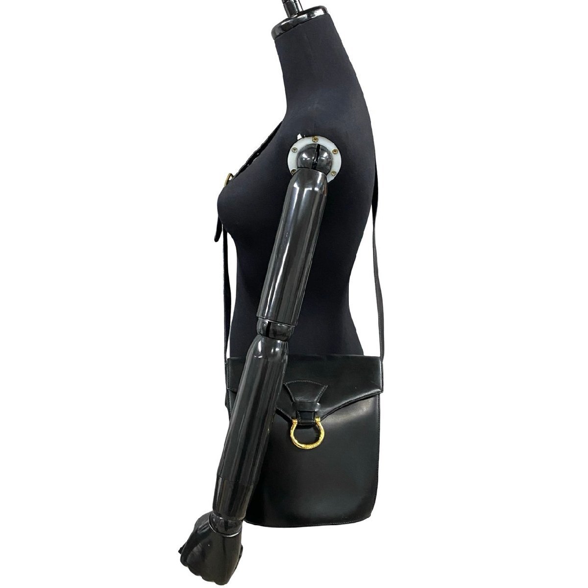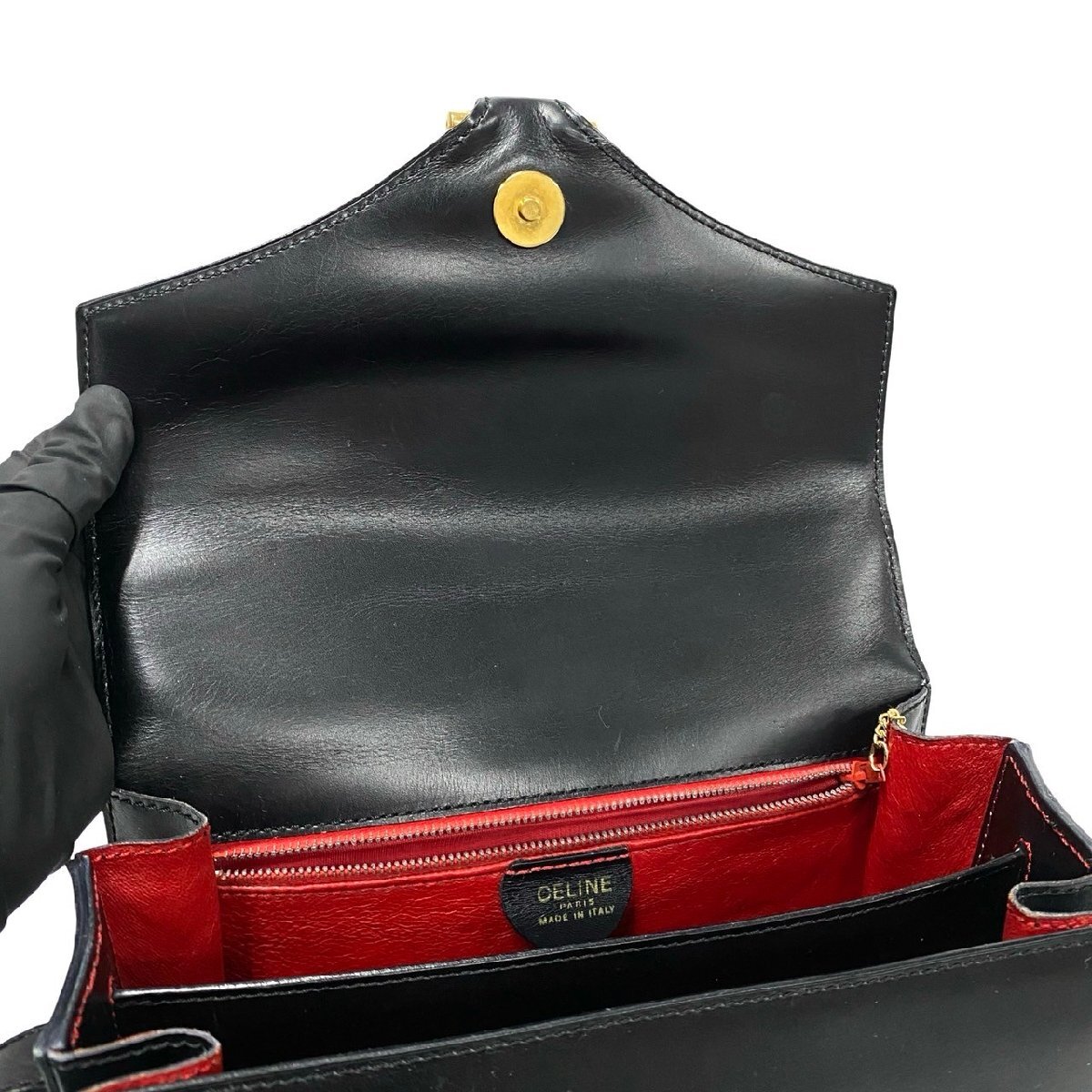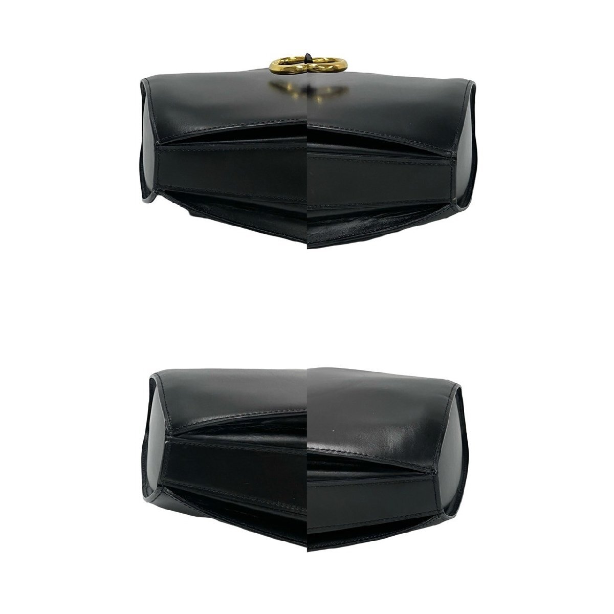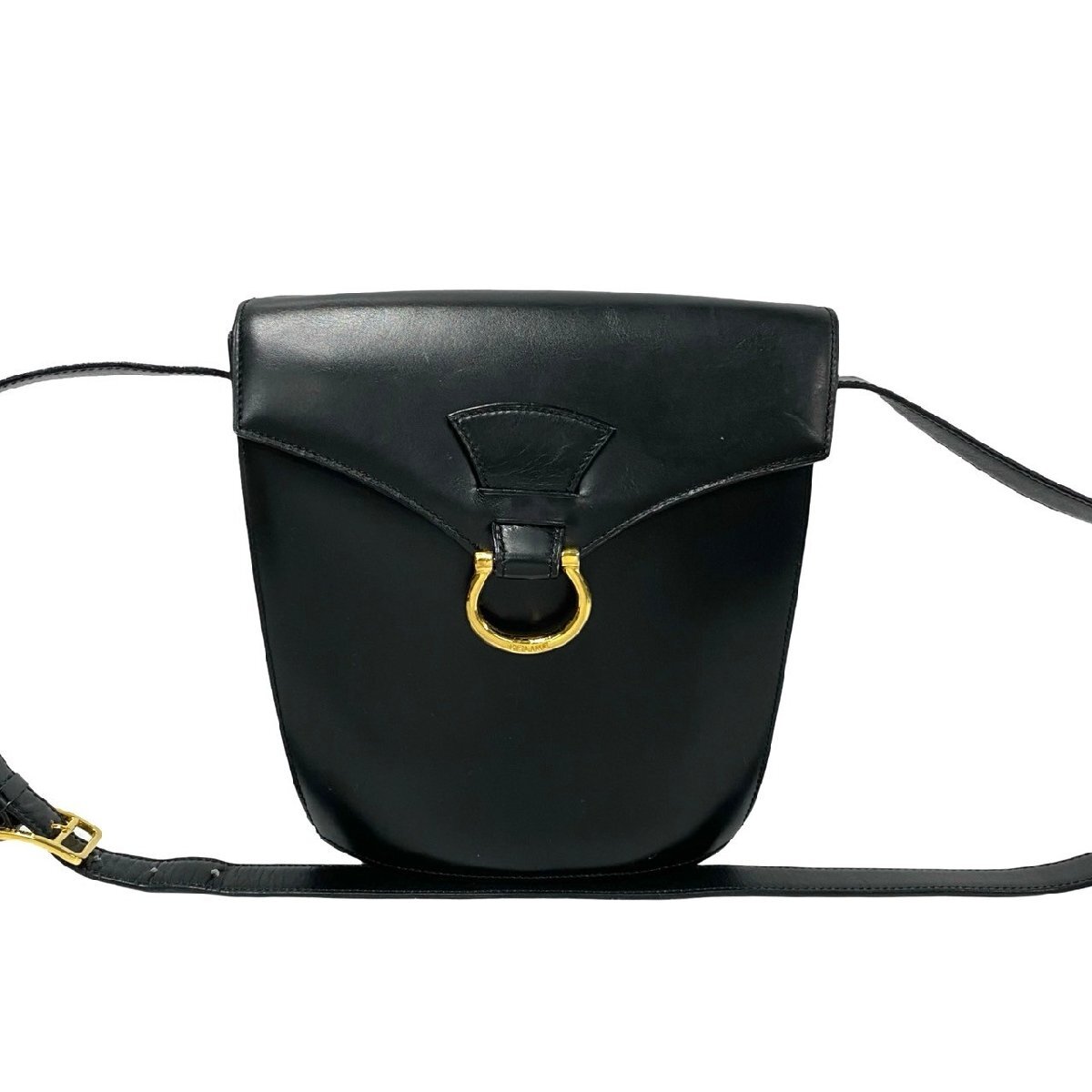 極 美品 CELINE セリーヌ ヴィンテージ ガンチーニ ロゴ 金具 カーフ レザー 本革 ショルダーバッグ ポシェット ブラック 58305