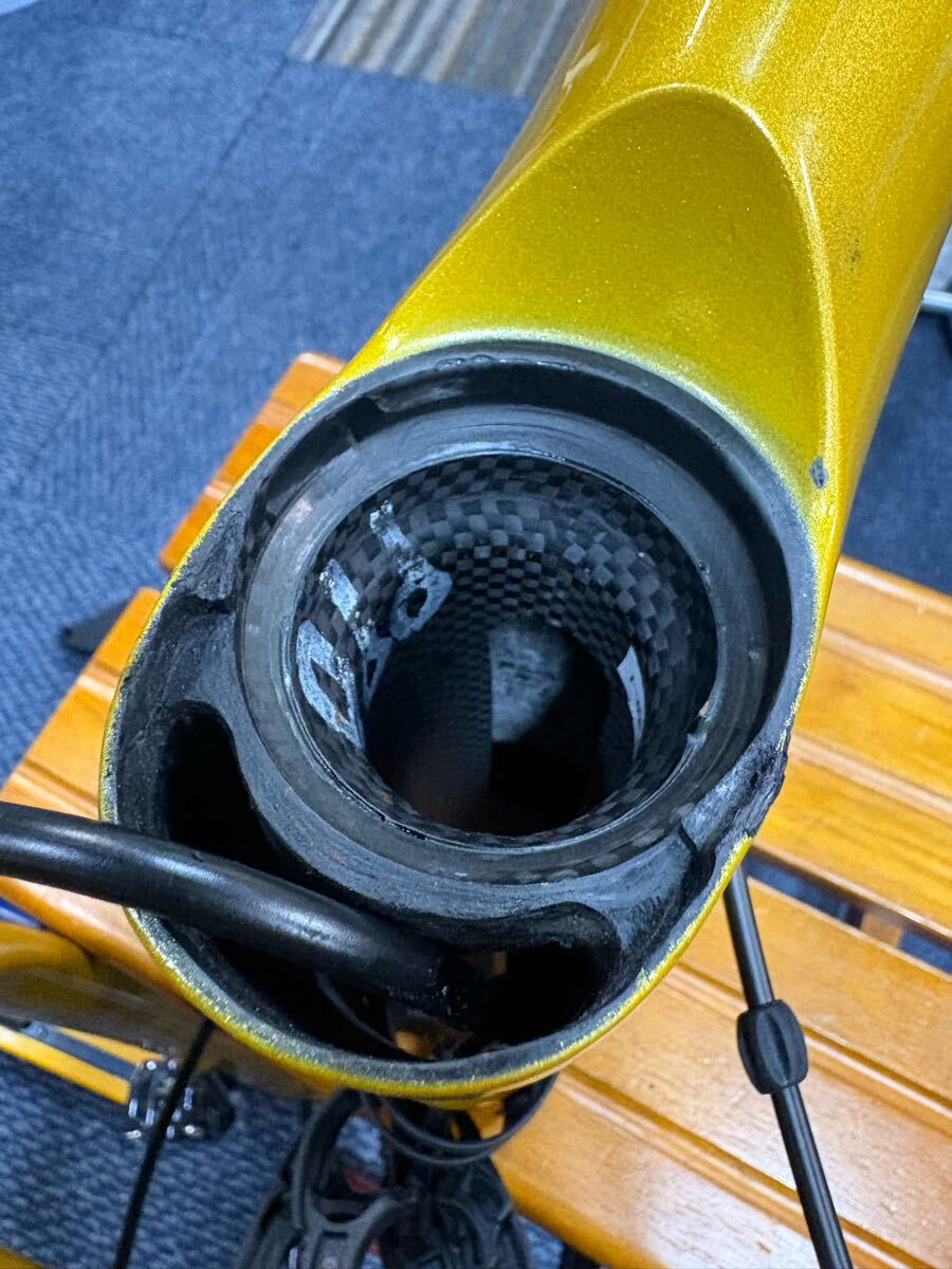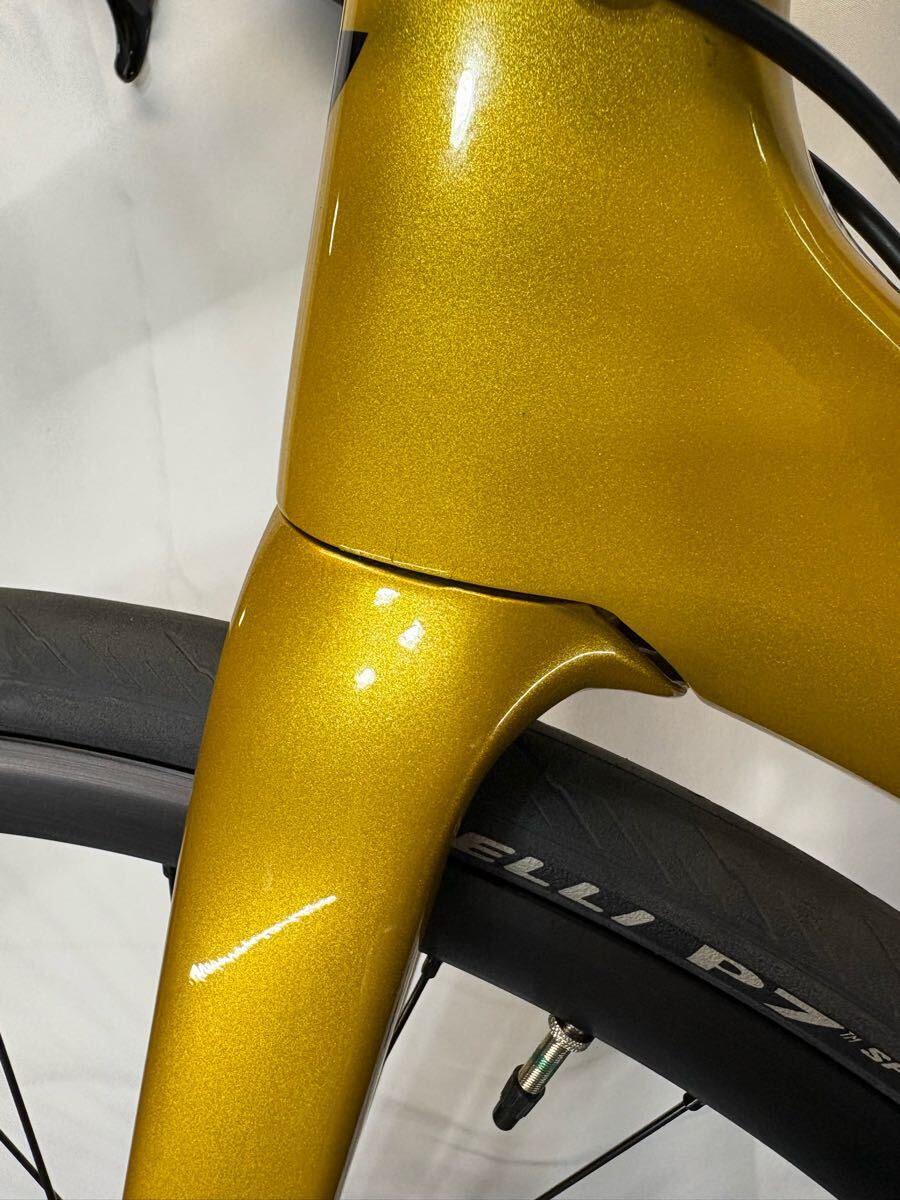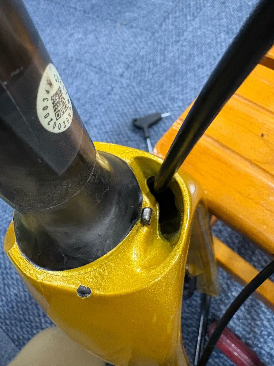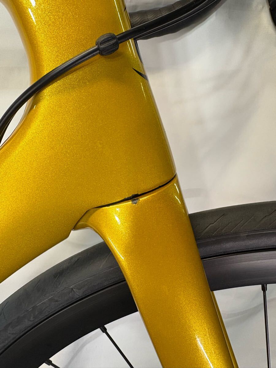 訳ありの内容は、フレームヘッド下部両側の小さなヒビ割れです。(写真3、4)