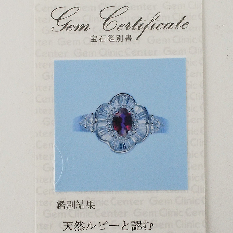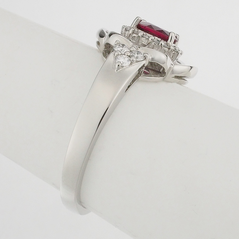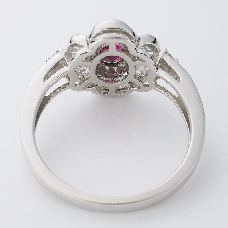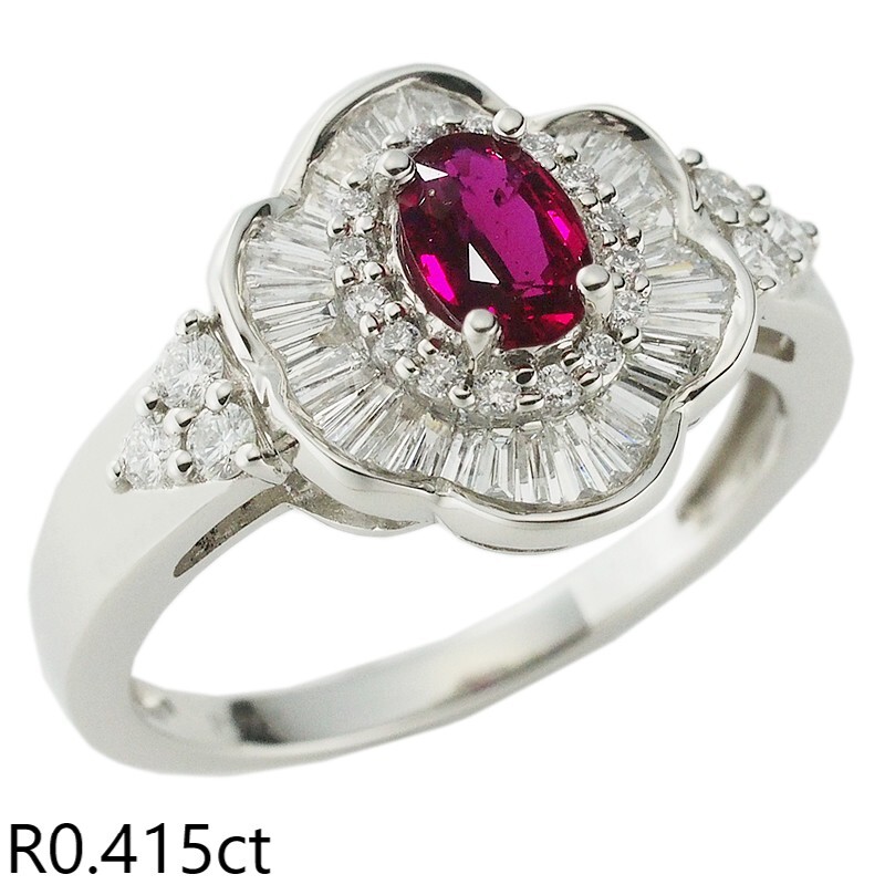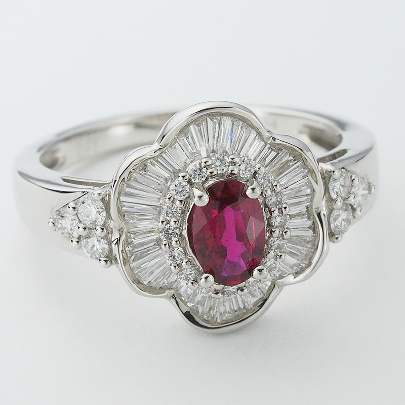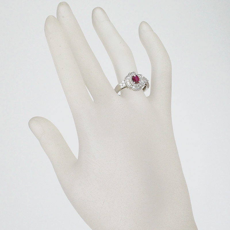 ルビーの赤い輝きとダイヤモンドの白い輝きが美しいプラチナ製のリングです。
