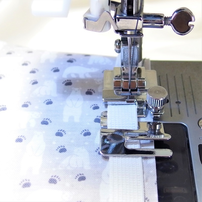 ゴムだけではなく、リボンなども綺麗に縫えます。