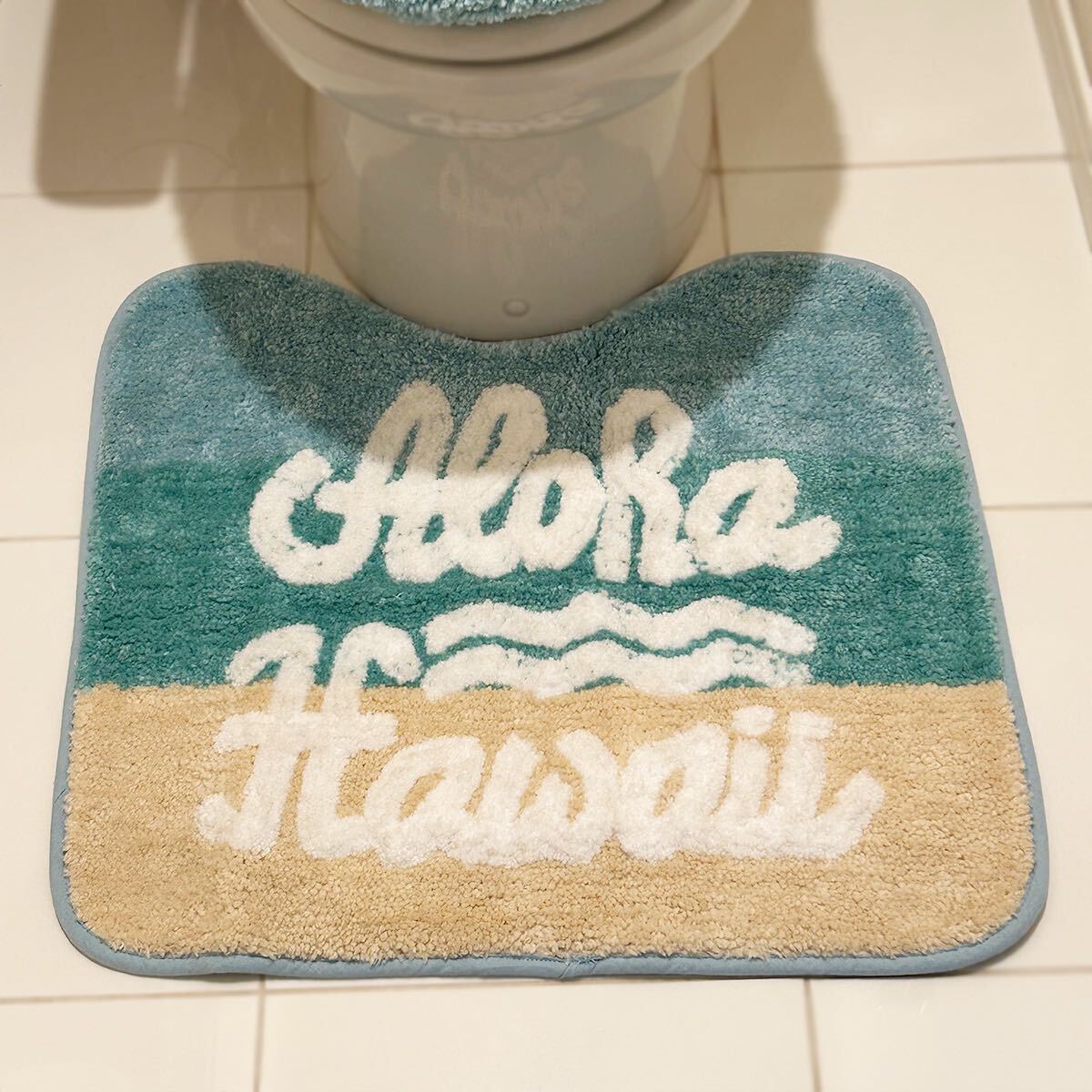 ハワイの風情と温かみを感じられるトイレの蓋カバーと床マットのセットで、その柔らかなコットンパイル素材は肌触りが優しく、使い心地抜群です。