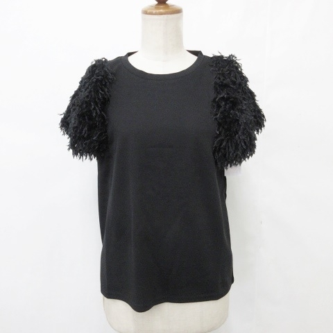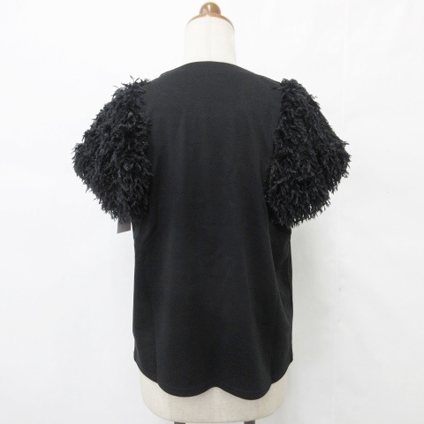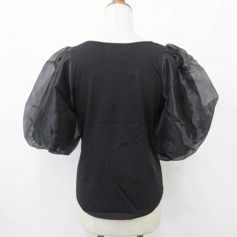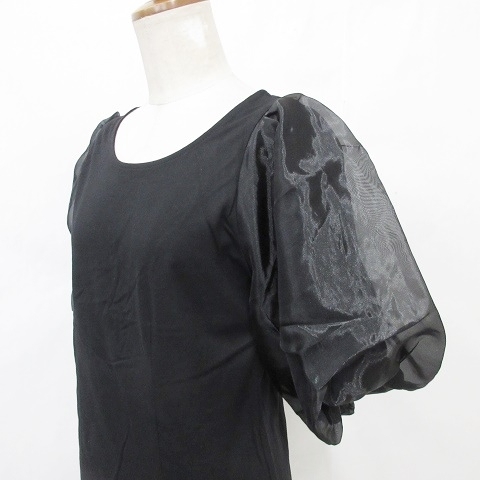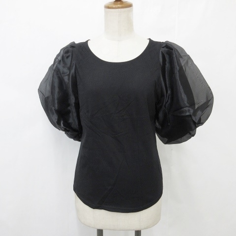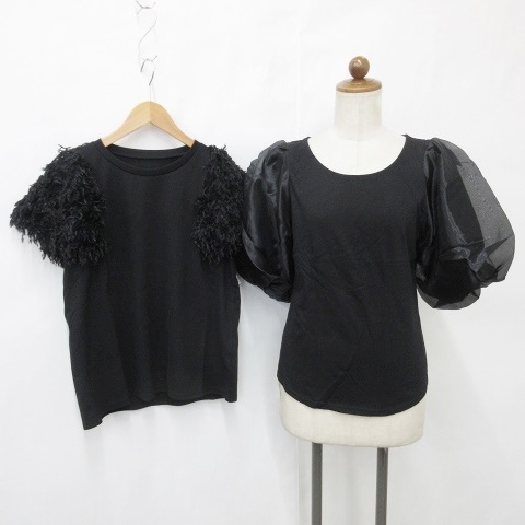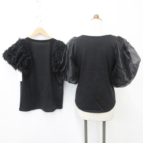 未使用品 ランダ RANDA closet トッコ TOCCO カットソー 2枚セット プルオーバー 五分袖 クルーネック 別布 シフォン 半袖 ブラック F M