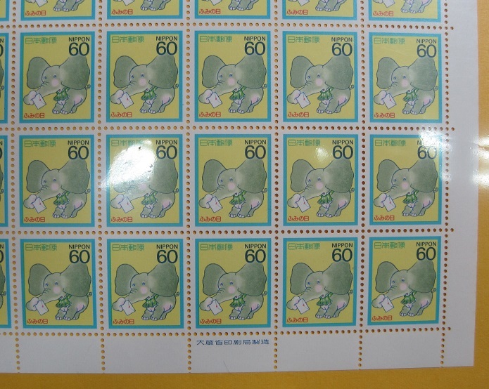 ふみの日 《60円》 ぞうと手紙(シート)1987年