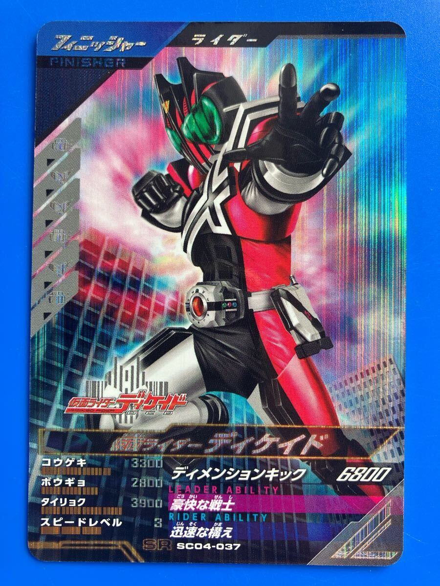 仮面ライダー、ガンバレジェンズの第SC04弾から、No.037、フィニッシャー(SR)カード《仮面ライダーディケイド》の登場です。発送は、普通郵便を利用します。(特にご希望のない場合)おとりまとめも可能ですが、送料に変動する場合がございます。また、送料のご請求は、自宅での計量を基準にご請求させていただいておりますので、実際の金額と差異が出る場合もございます。予めご了承ください。他にも多数出品中です。まとめてこの機会にいかがでしょうか?ご質問お待ちしております。