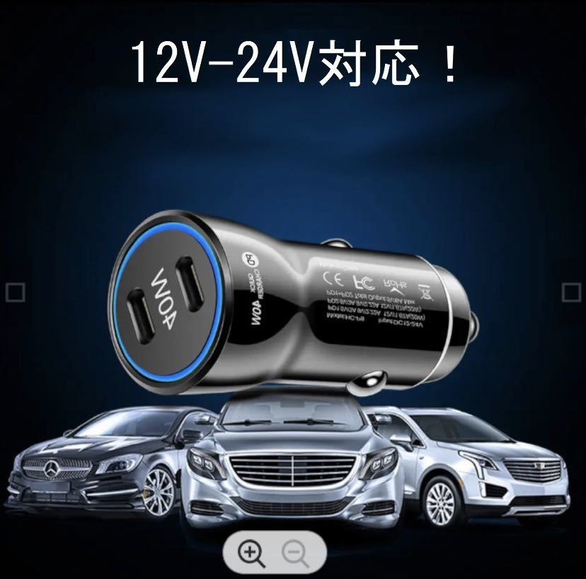 車のシガーソケットに差し込むだけでusb-cケーブルでの急速充電が可能!