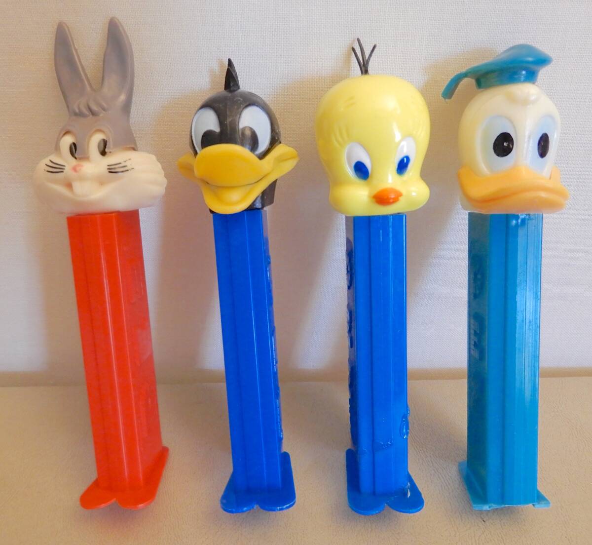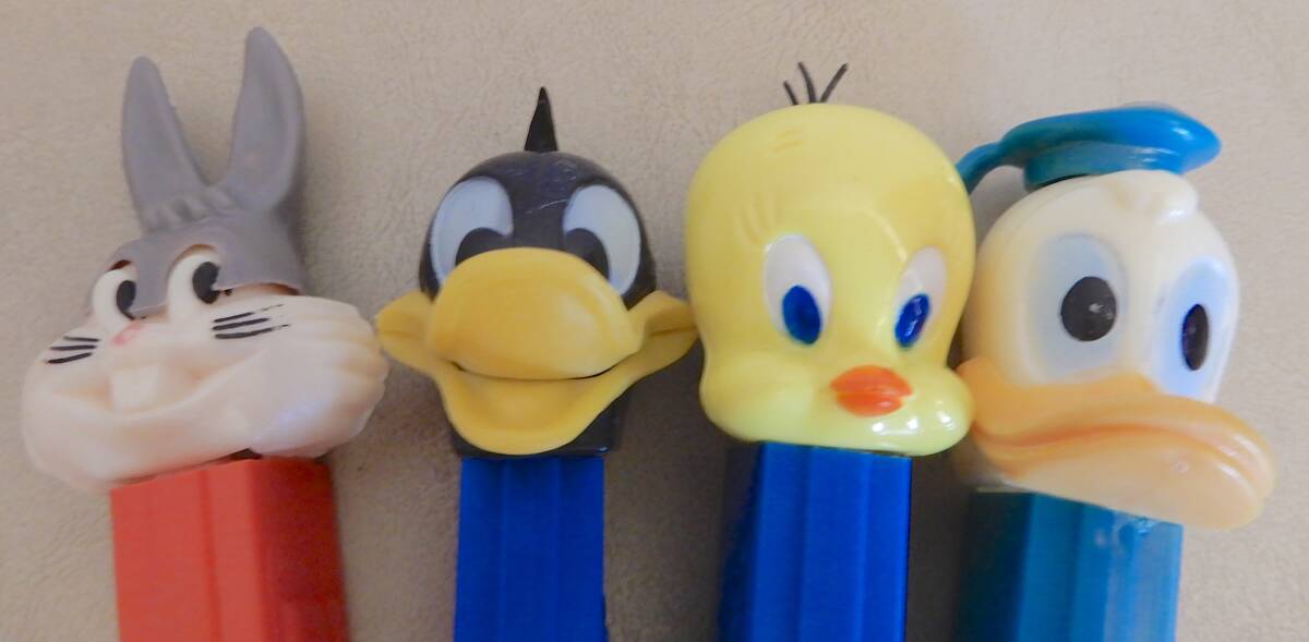 【USA発送★PEZ★ペッツ4個セット】ヴィンテージ★ワーナーLooney Tunes/ドナルドダック★薄足★3.942.683★オーストリア等★一部難あり