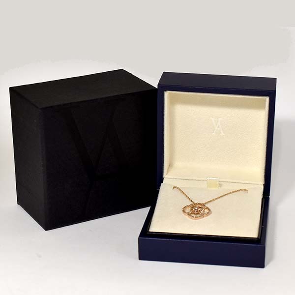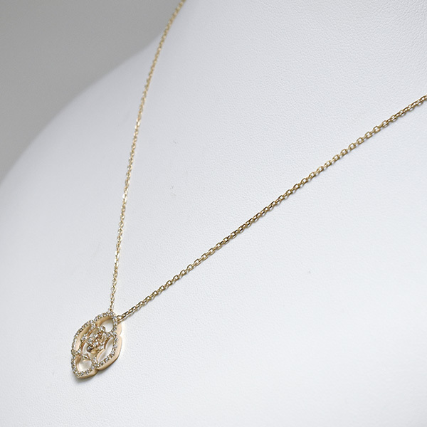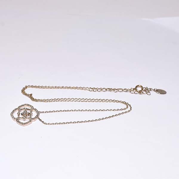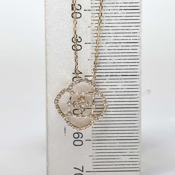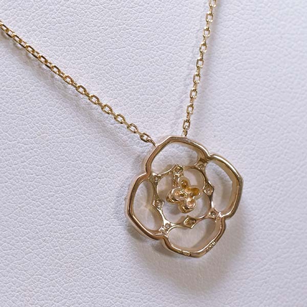 フラワーモチーフにダイヤをセットしたヴァンドームの18金ピンクゴールド製ネックレス。