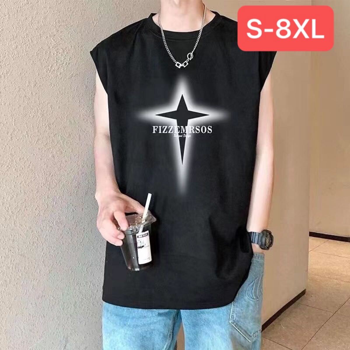 メンズtシャツ ノースリーブ ティーシャツ メンズ tシャツ ラウンドネック アメリカン 大きいサイズ ゆったり 夏 プリント メンズファッション かっこいい JUCS099(3色S-8XL)
