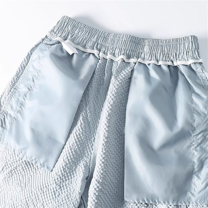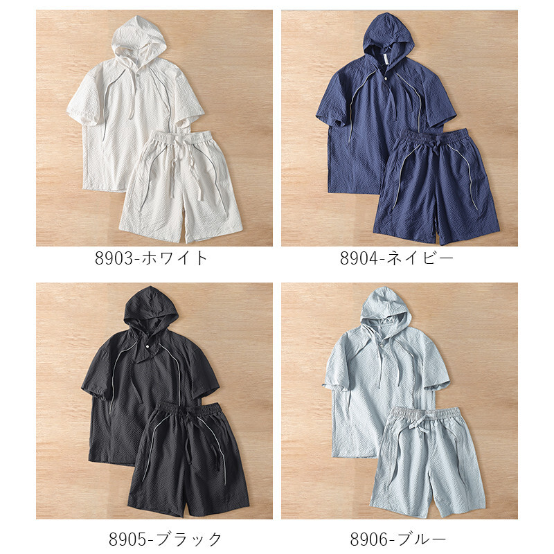 T8906-XL/ブルー 新品 シアサッカー サマーセットアップ上下 メンズ セットアップ 吸水速乾 半袖 パーカー ショートパンツ 盛夏 半パン