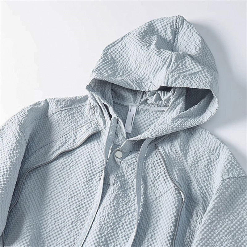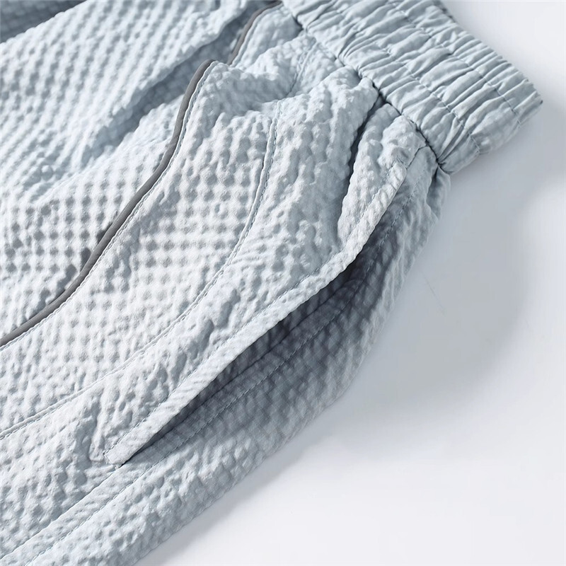 清涼感たっぷりのシアサッカー素材に、ストレッチ性・吸水速乾性・撥水性をプラス。