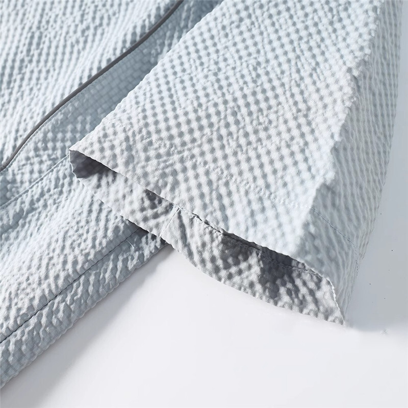 軽やかで肌離れの良い凹凸感が特徴のシアサッカー生地を使用し、汗ばむ季節でもサラリと快適。
