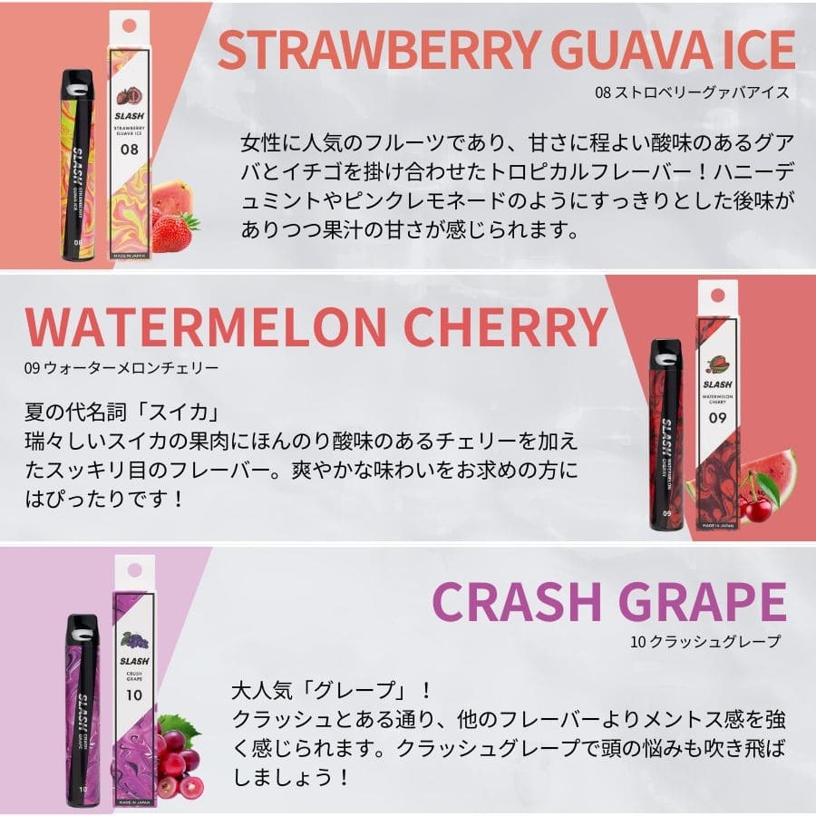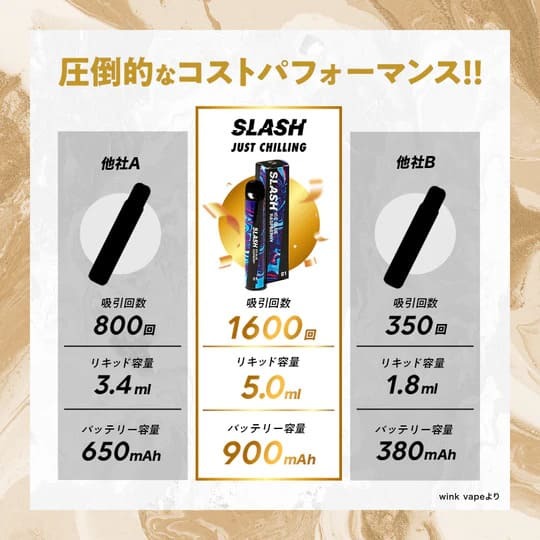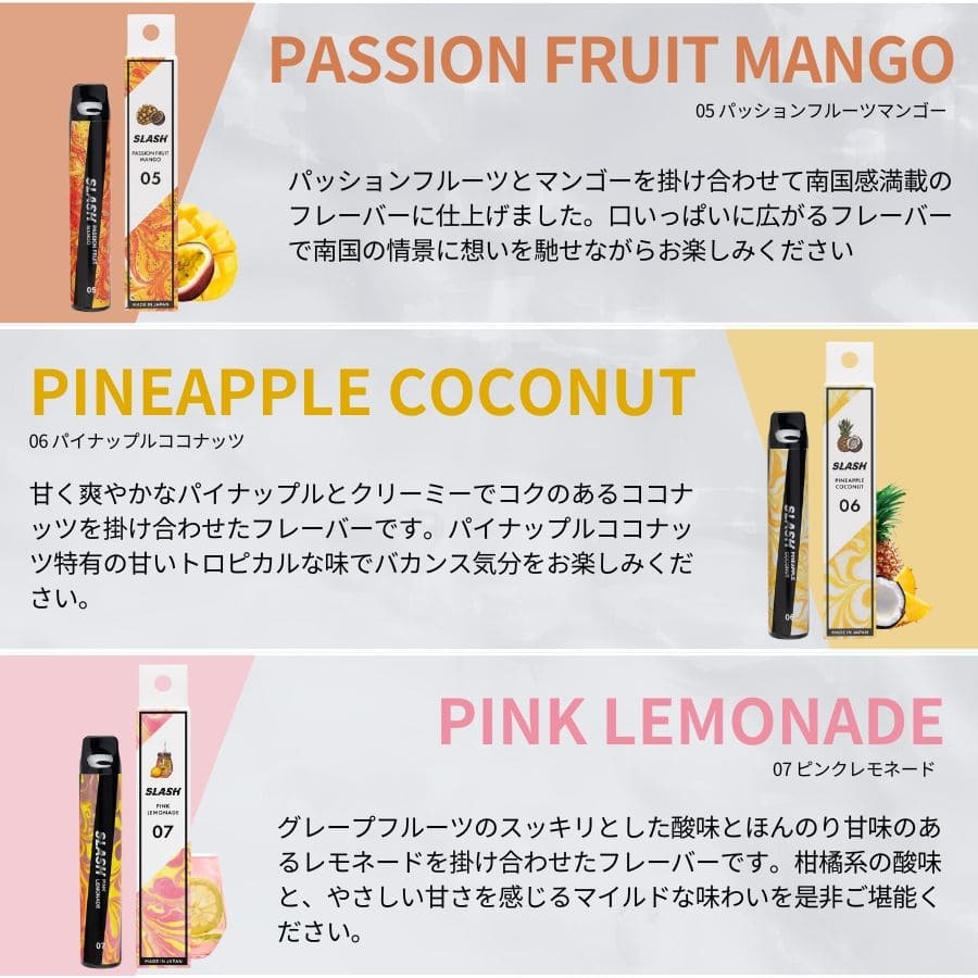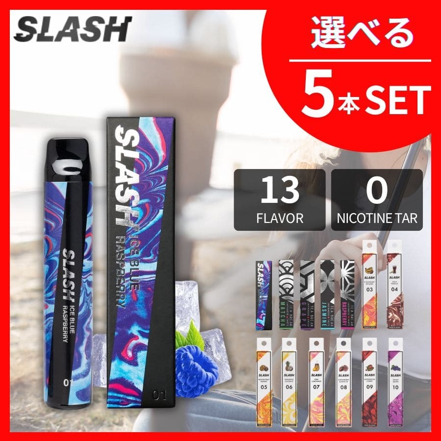 【選べる5本セット】SLASH スラッシュ VAPE 電子タバコ 持ち運びシーシャ 使い捨て ニコチンなし