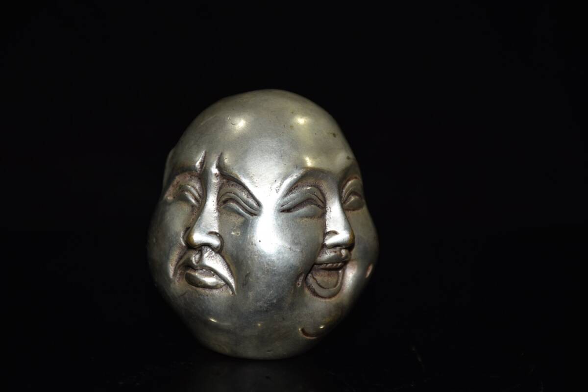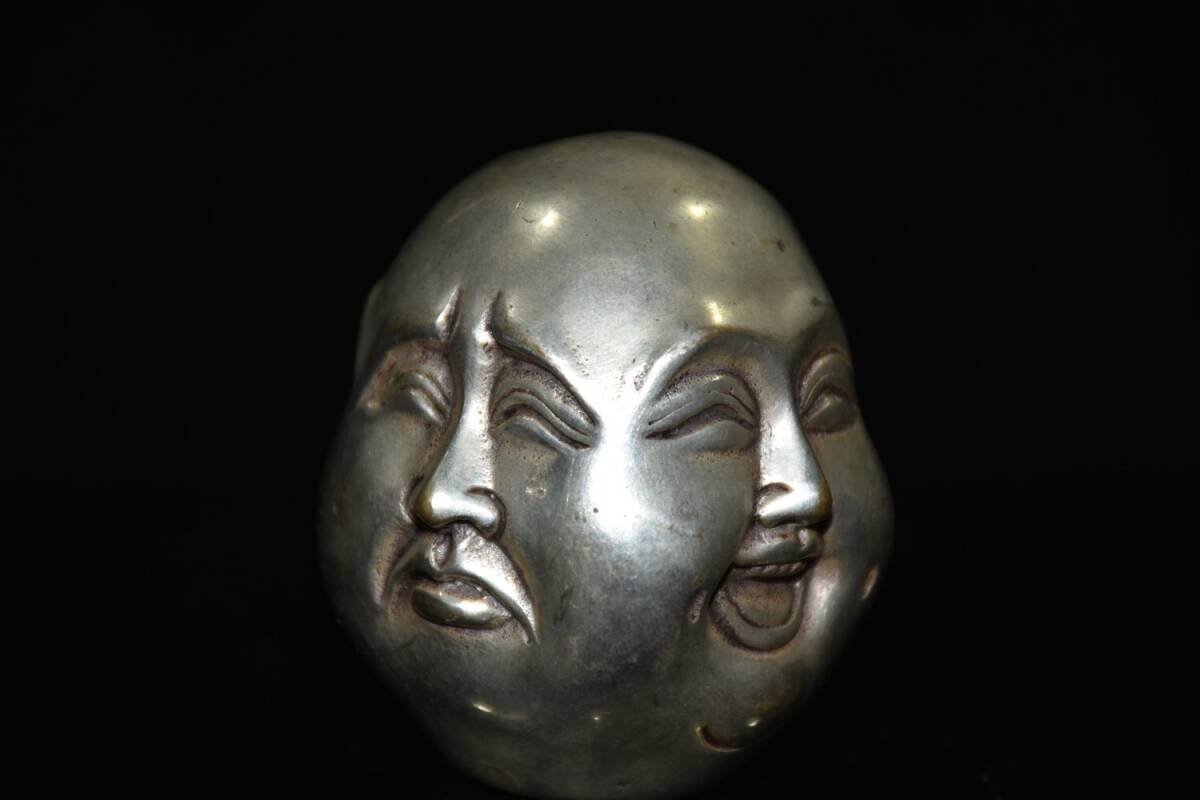 | 【古寶奇蔵】銅製・銀鍍・喜怒哀樂四面仏頭・仏像・宗教・仏教古美術・供養品・古董品・中国古玩・時代物・希少珍品・中国時代美術 |