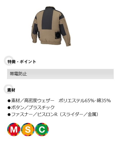 アイトスの空調服 長袖ブルゾン 【AZ-30589】 を特別価格にて提供します