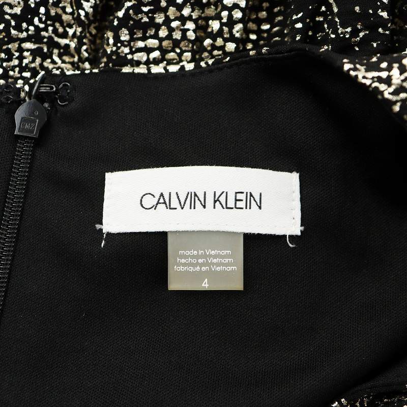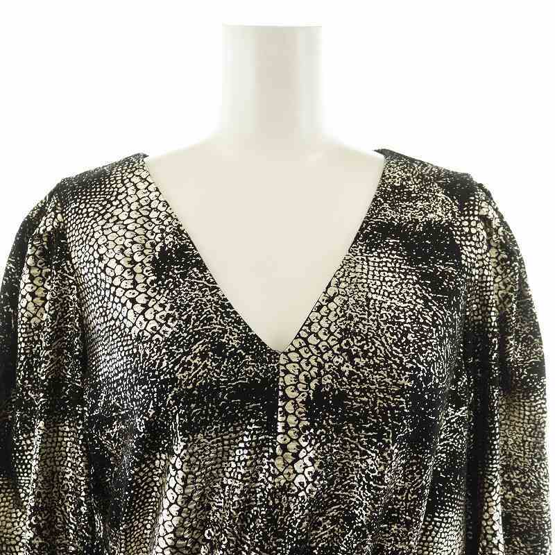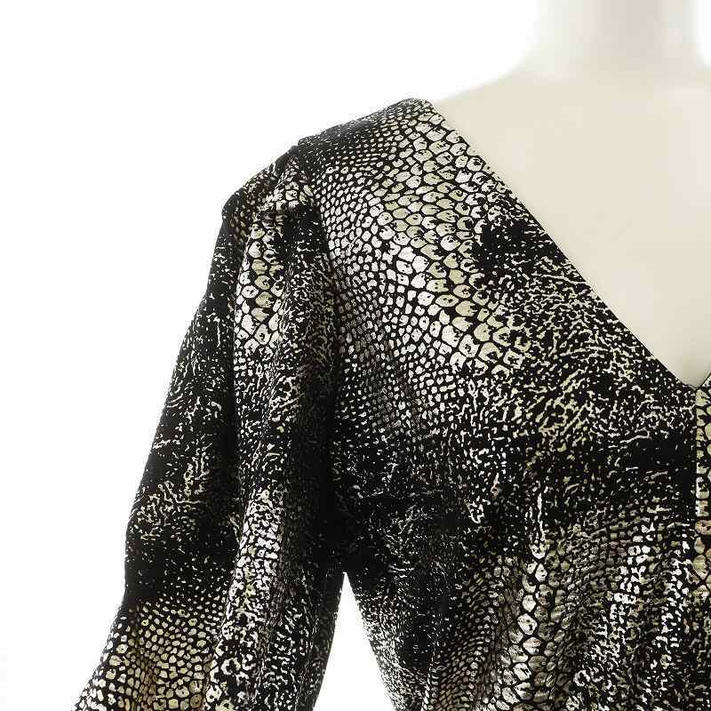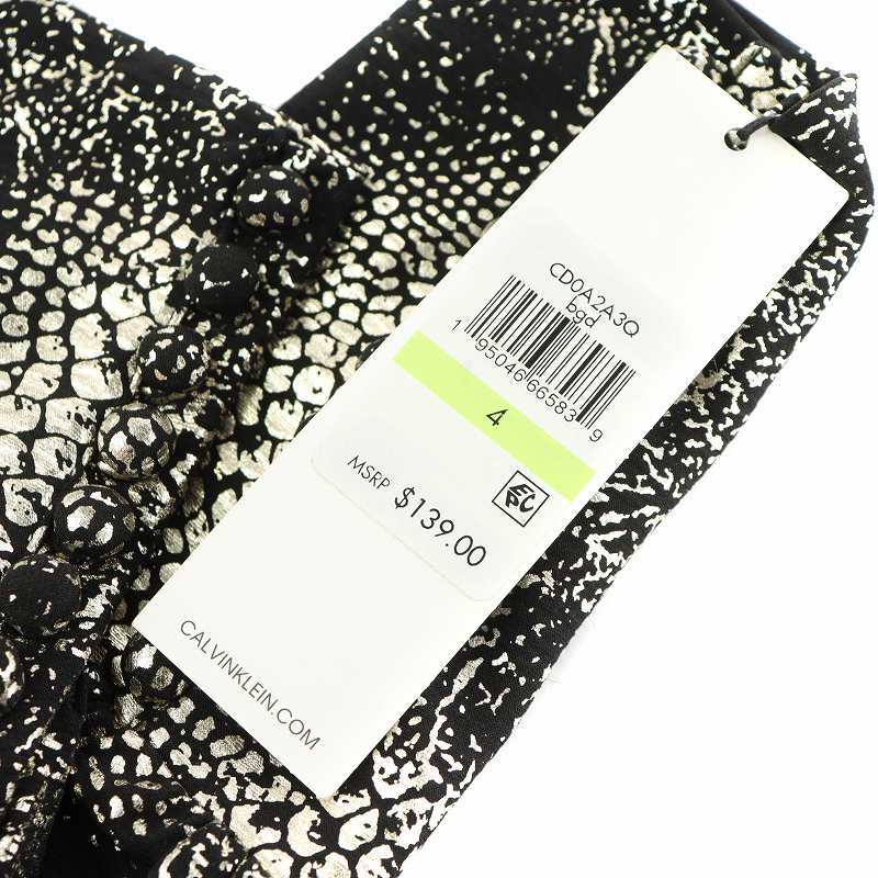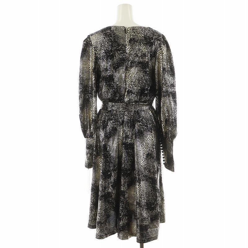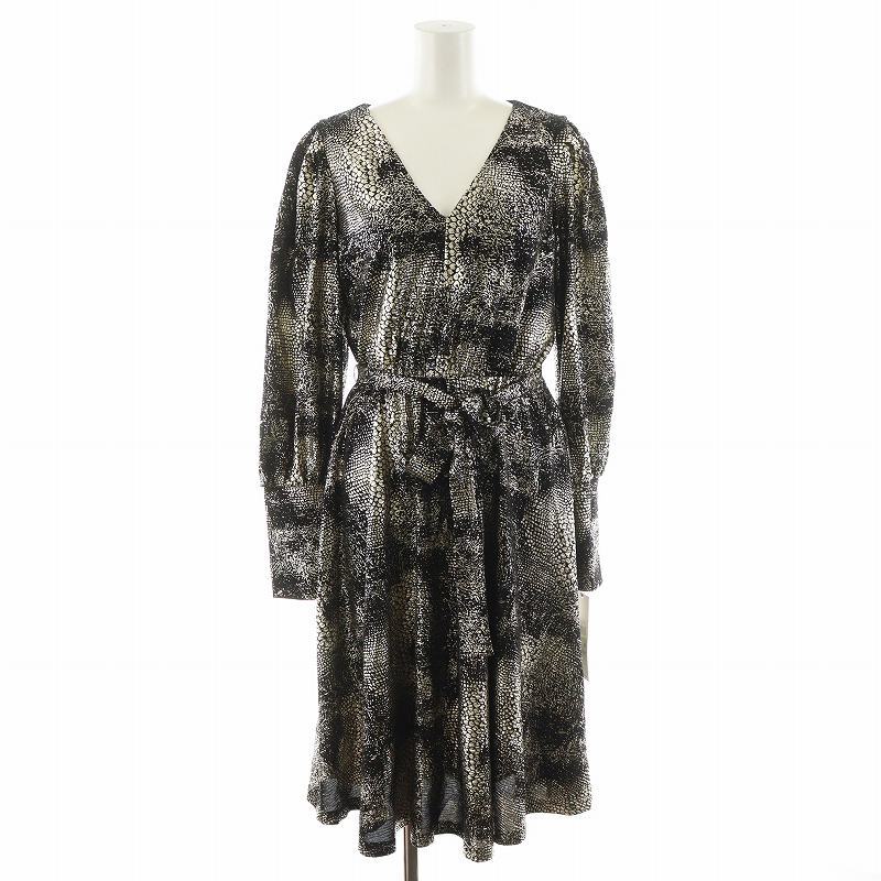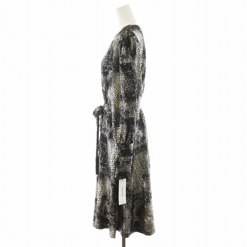 未使用品 カルバンクライン CALVIN KLEIN ワンピース ロング丈 長袖 Vネック パイソン柄 4 シルバー色 黒 ブラック /AN38 レディース
